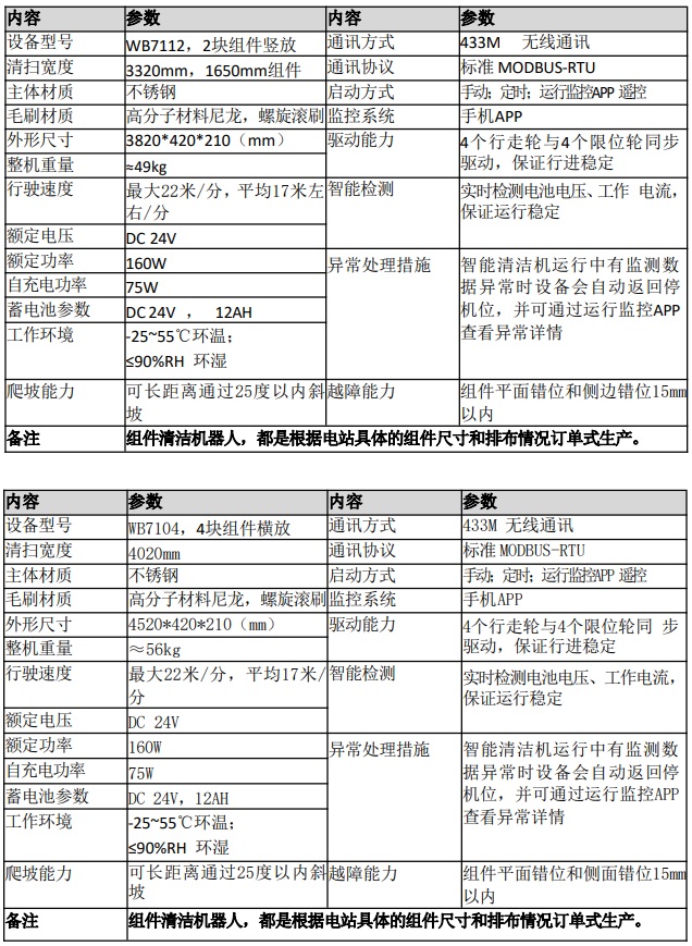 3.采用硬度比组件小几个数量级的高分子材料滚刷,毛刷清扫范围须覆盖全部光伏面板区域,清扫无遗漏;不损坏光伏组件表面的材质,并做过 TUV 检测。
