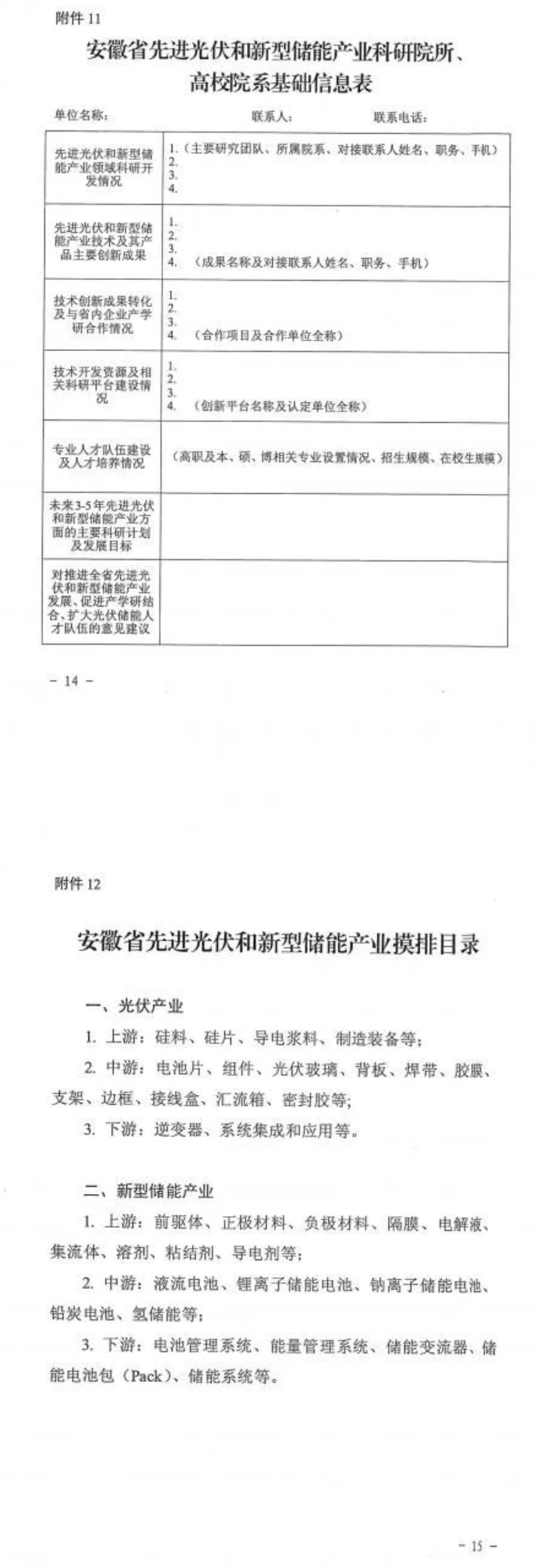 根据通知,填报范围包括,安徽省内具有独立法人资格的先进光伏(包括硅片、电池片组件、逆变器等)和新型储能企业(包括离子电池、钠离子电池、液流电池、氢储能电池等)、上游直接配套企业(包括光伏玻璃、封装胶膜、密封胶、金刚线、高纯石英制品、导电浆料靶材、支架、光伏设备等)及后端专项服务企业(包括项目开发设计、电站工程建设、系统集成服务等)。