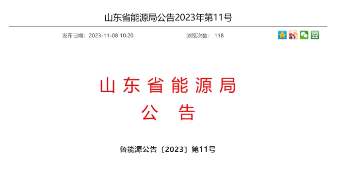 11月8日,山东省能源局发布《2023年第11号》公告。