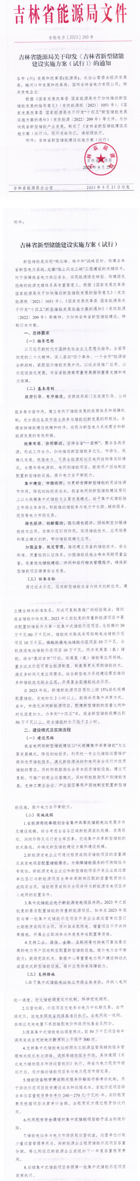 近日,吉林省能源局印发了《新型储能建设实施方案(试行)》(以下简称《实施方案》)。