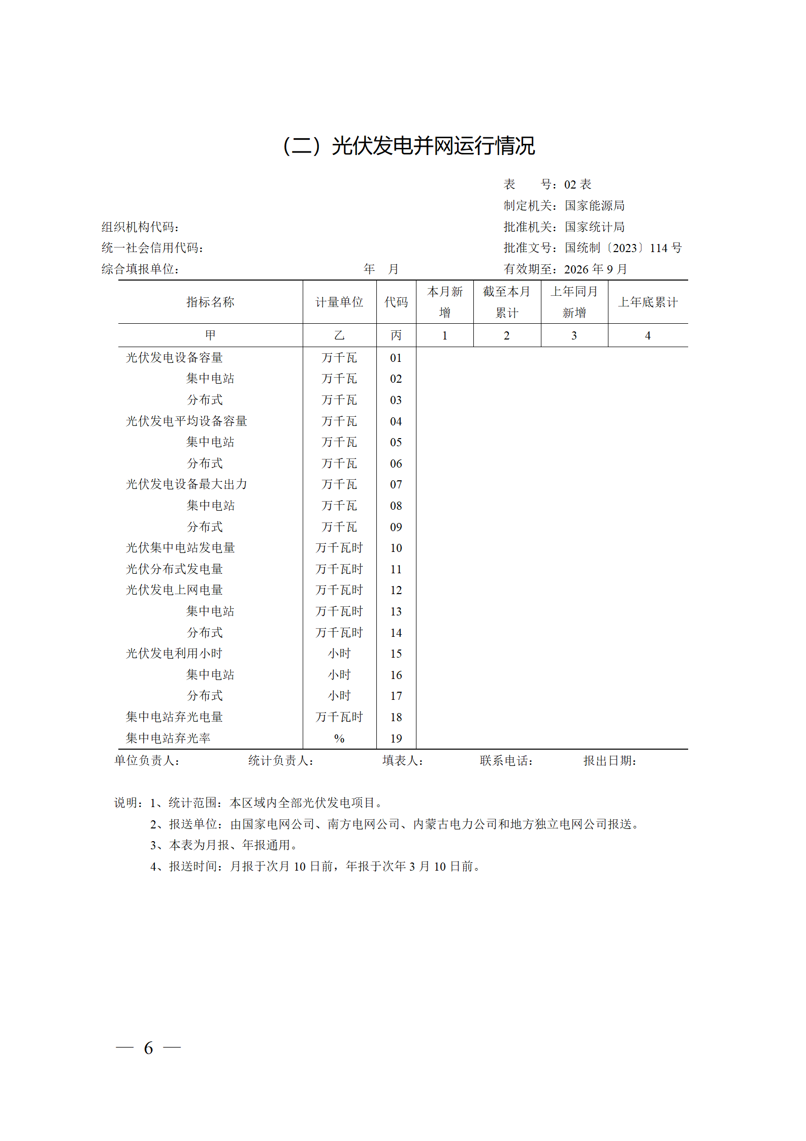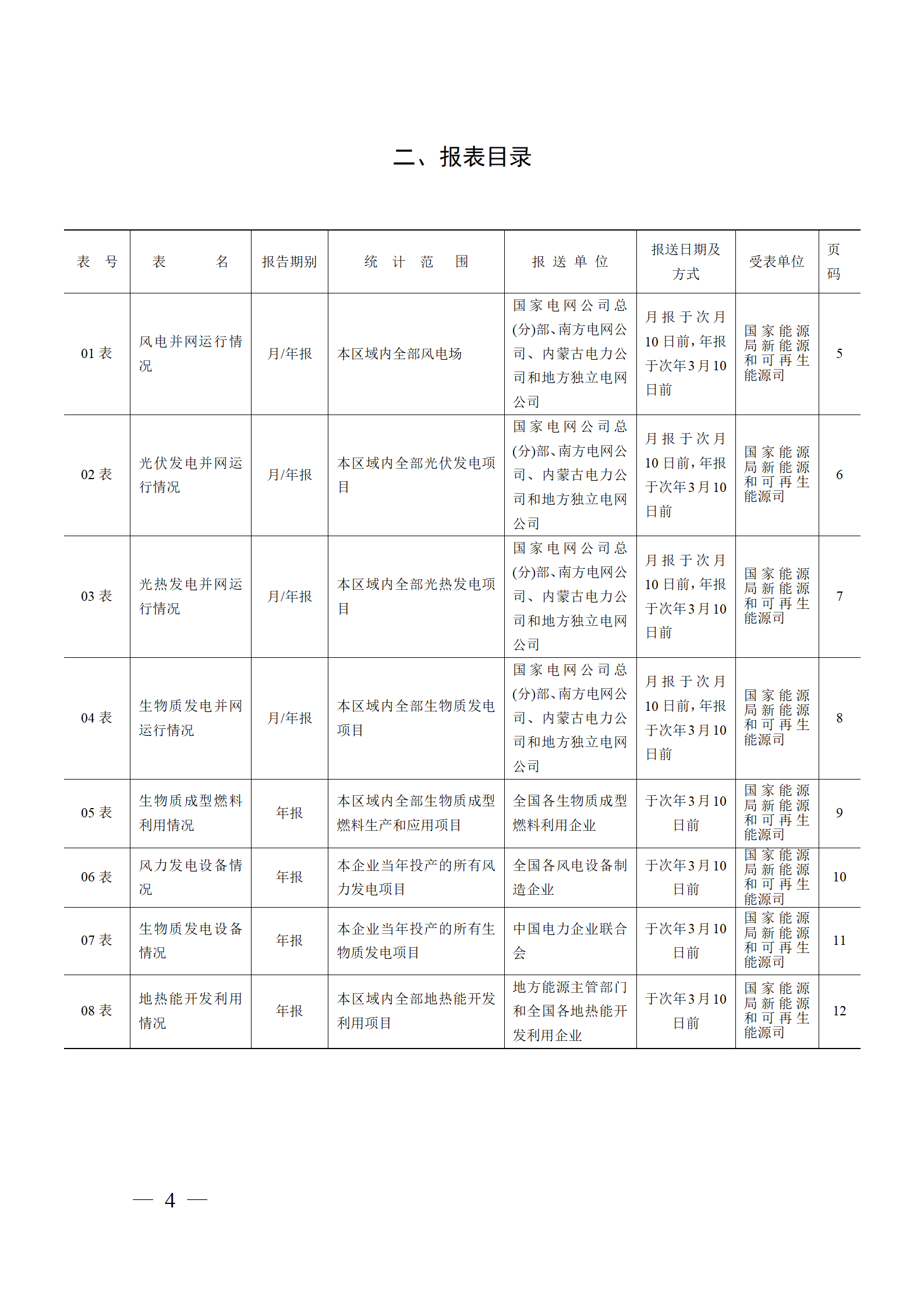 主要调查对象为各地方能源主管部门、国网、南网、央国企等可再生能源投资开发企业,报告期别分为月报和年报两种方式。