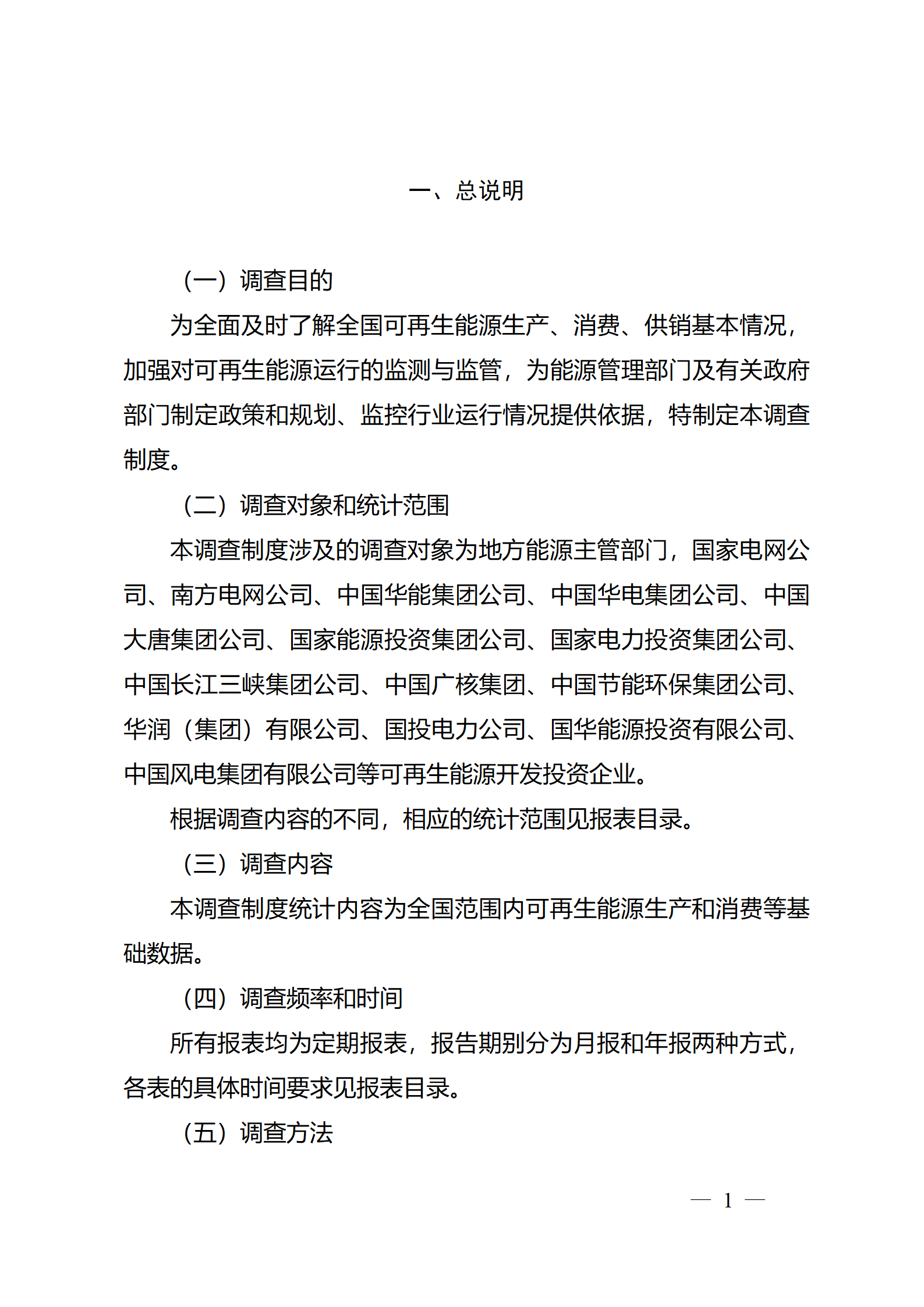 根据文件,为全面及时了解全国可再生能源生产、消费、供销基本情况,加强对可再生能源运行的监测与监管,为能源管理部门及有关政府部门制定政策和规划、监控行业运行情况提供依据,特制定本调查制度。