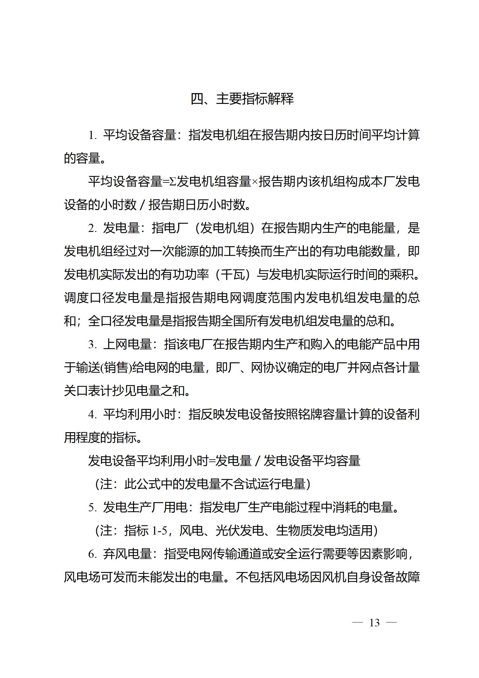 具体调查类型包括风电、光伏、光热、生物质、地热能等等。光伏调查指标包括设备容量、平均设备容量、最大出力、发电量、上网电量、利用小时数、弃光电量、弃光率等等。
