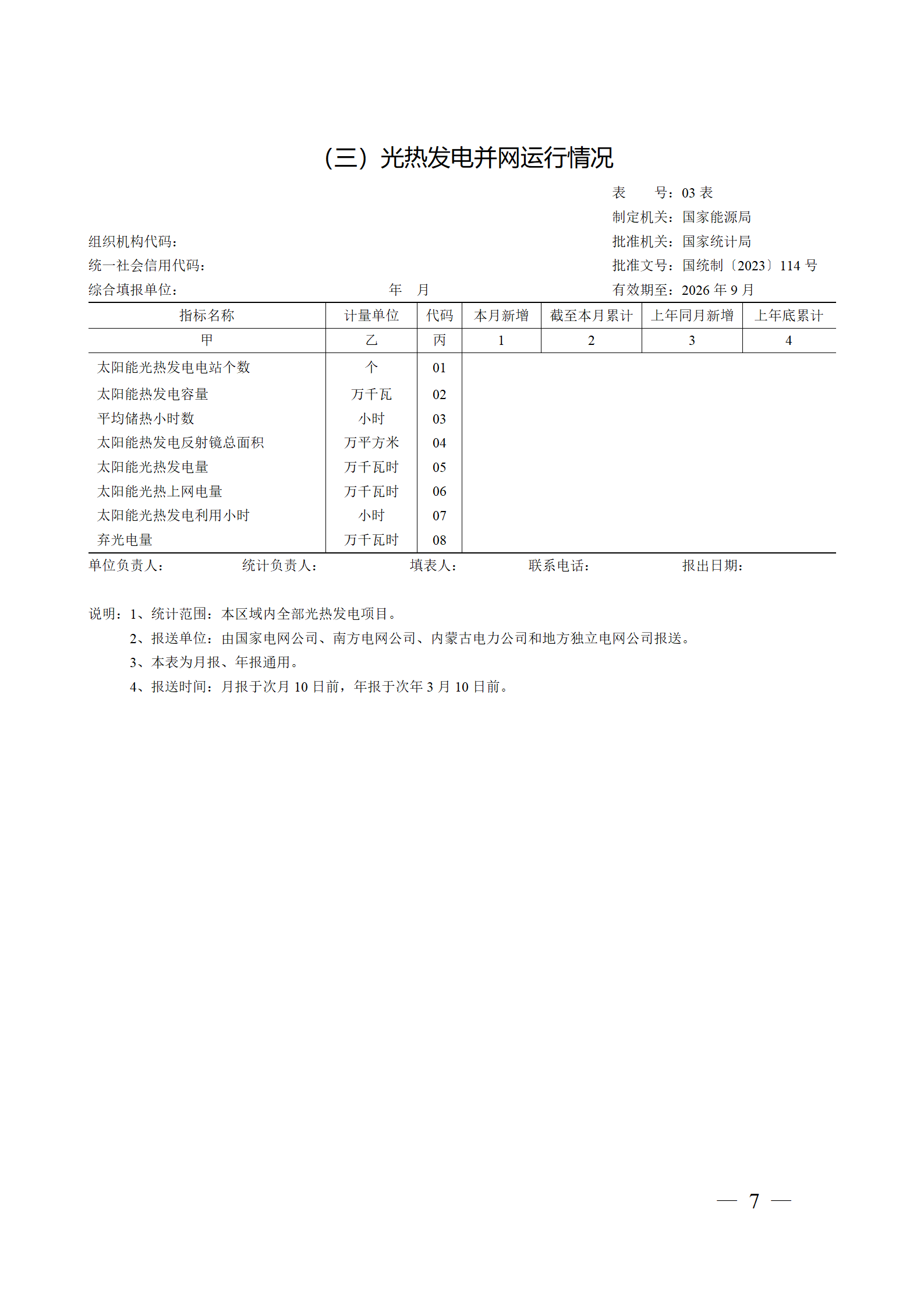 《统计调查制度》月报以电子版形式按原渠道报送国家能源局新能源和可再生能源司,年报以纸质和电子版形式同时报送。《统计调查制度》可在国家能源局网站(www.nea.gov.cn)下载。执行过程中有何情况和意见,请与我局新能源和可再生能源司联系。
