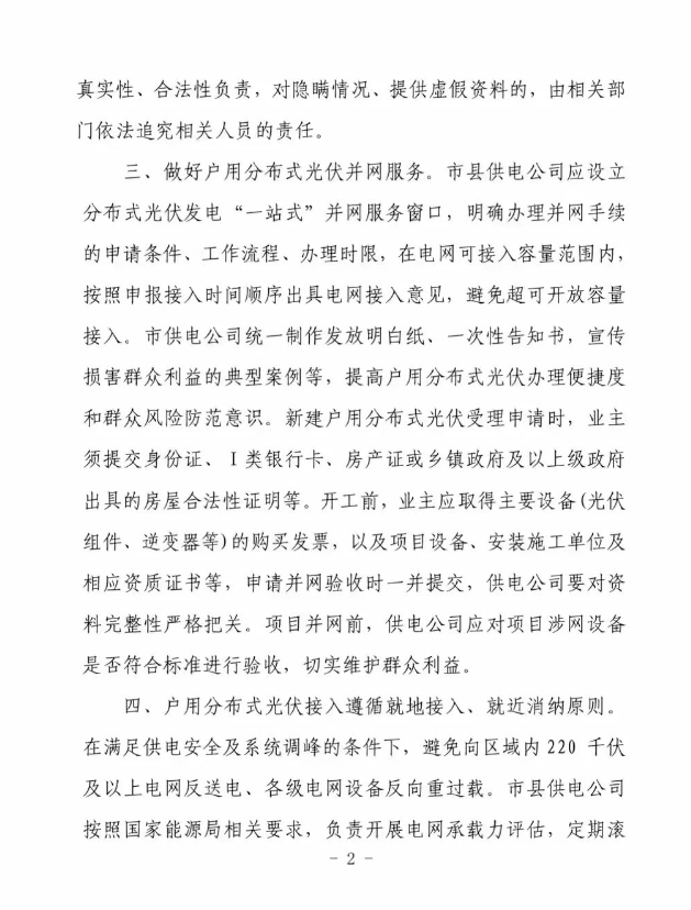 2)户用分布式光伏接入遵循就地接入、就近消纳原则。