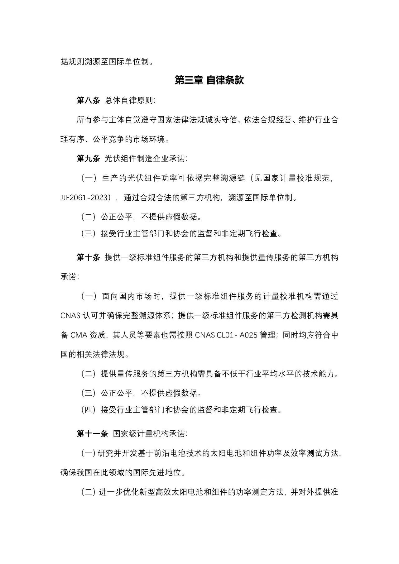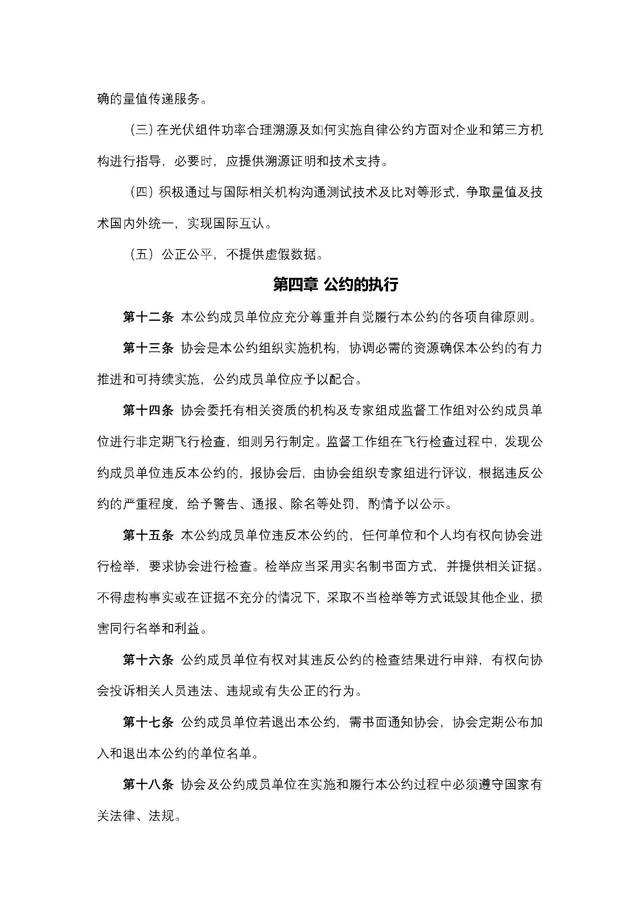 《自律公约》瞄准确保光伏组件功率准确溯源、减小功率标定偏差、减少光伏产品以次充好等目标,引导各方缓解国内外贸易过程中对组件功率数据的分歧,积极促进光伏市场可持续发展,在光伏组件功率标定、传递和溯源等方面,对光伏组件制造企业、第三方检测认证机构、计量机构提出了自律性要求和倡议。