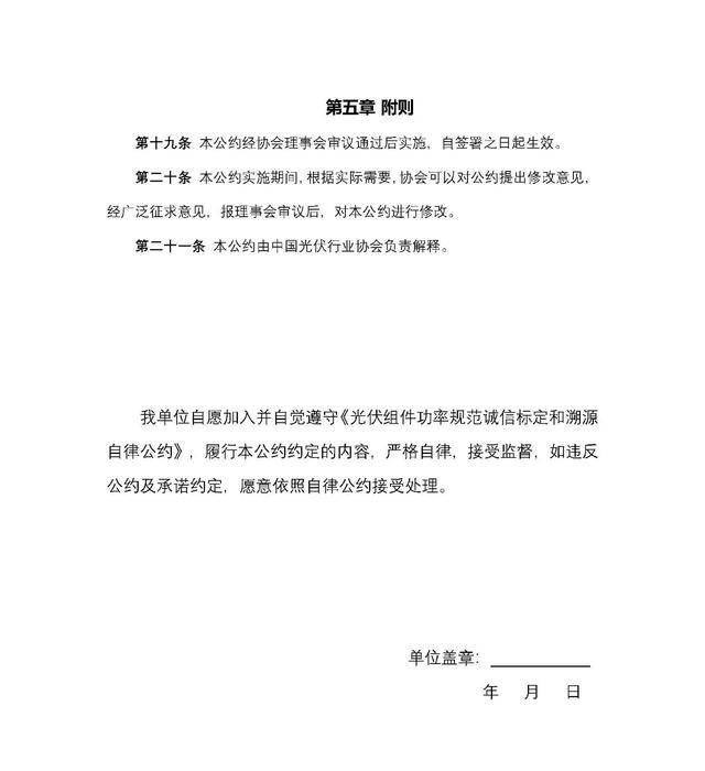 目前,中国光伏行业协会已组织40余家光伏企事业单位签署了《自律公约》,涵盖国内骨干光伏组件企业、第三方检测机构、认证计量机构等多个环节,后续还将组织更多单位参与签约。