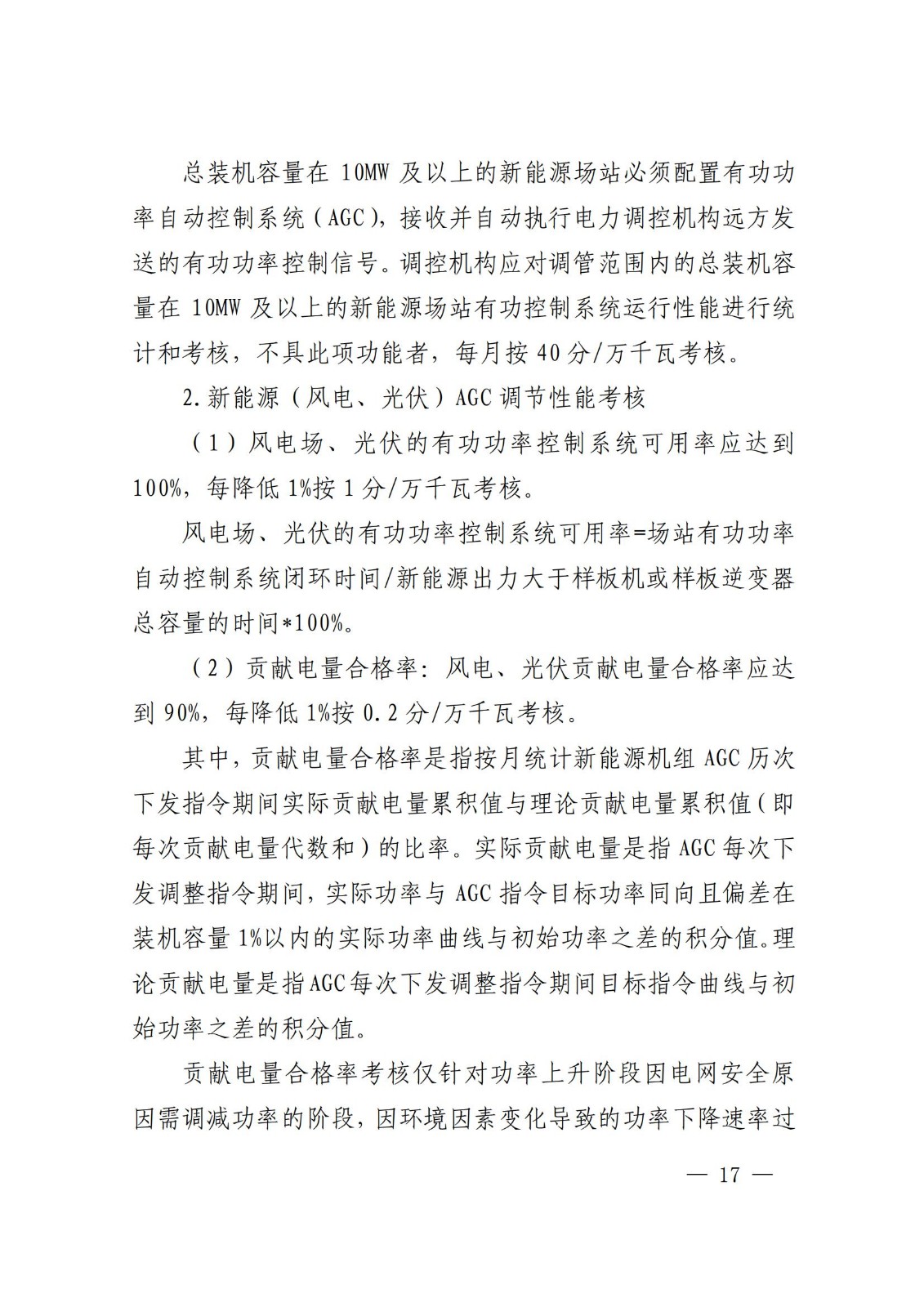 新能源场站(风电场、光伏电站)及新型储能电站每月2分/万千瓦(0.2元/kW),对并网主体的补偿最高不超过最高300分/月(30万元/月)补偿。