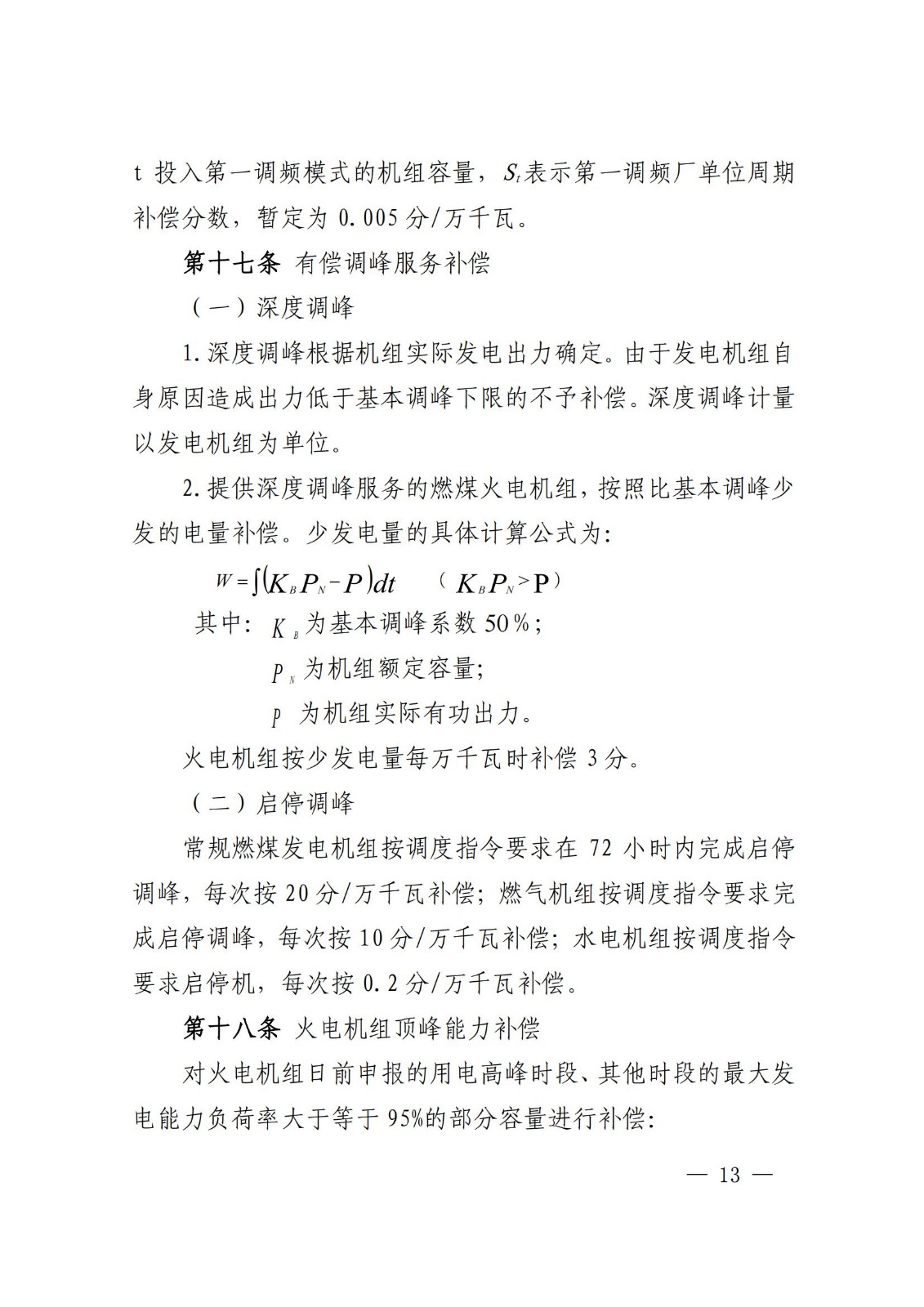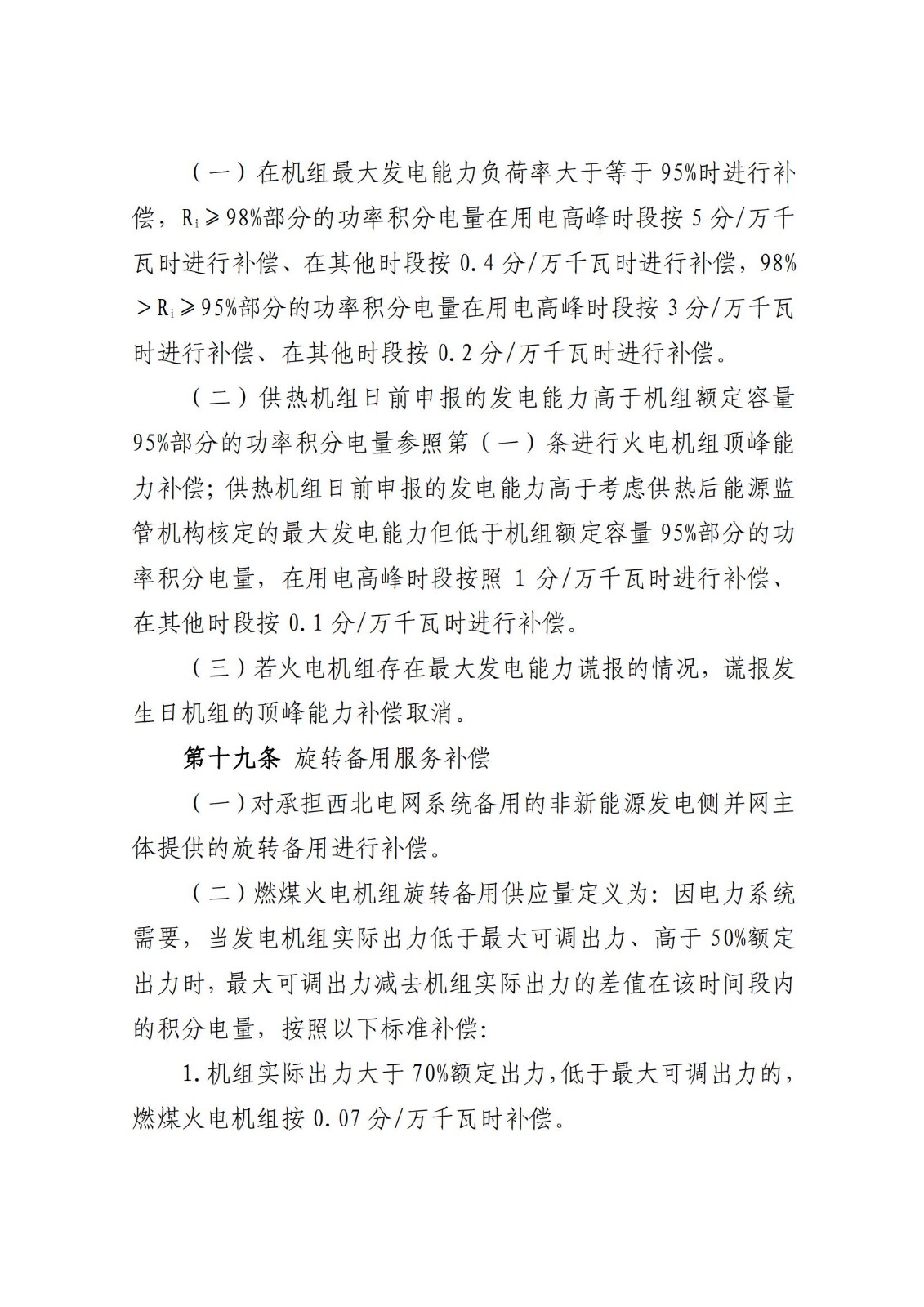 常规电源、光热、抽蓄、新型储能并网主体月可用率达到98%以上,每提高1%补偿1分/万千瓦(0.1元/kW)。