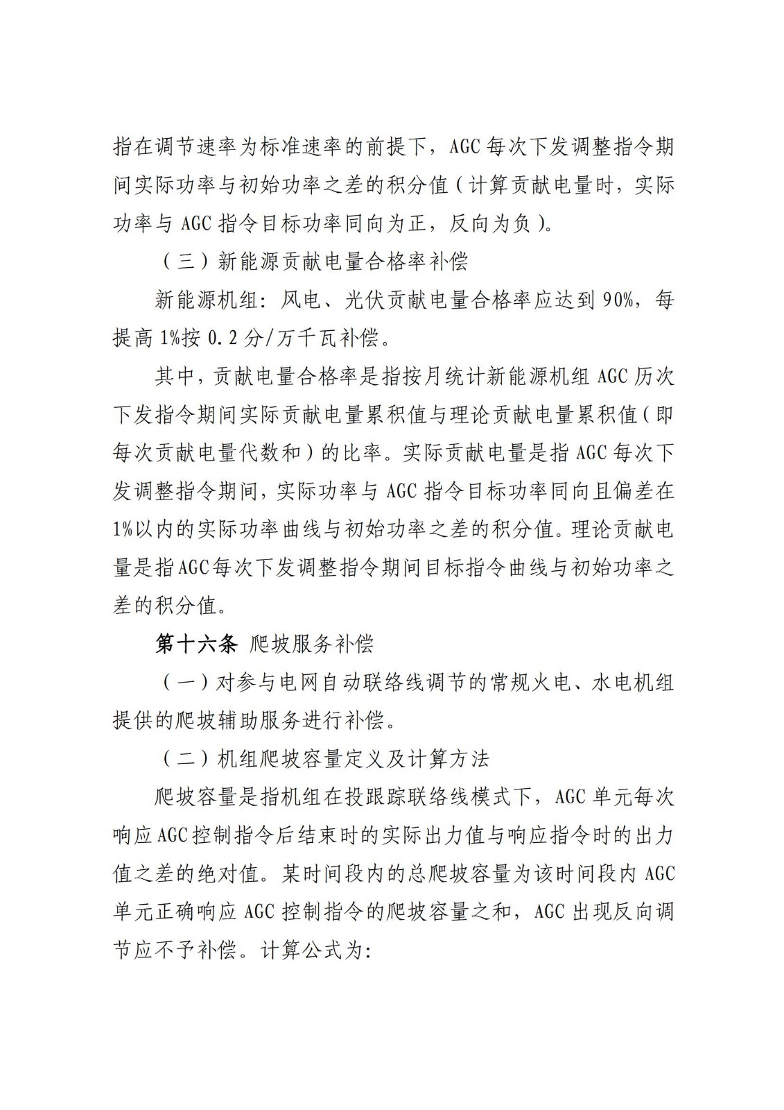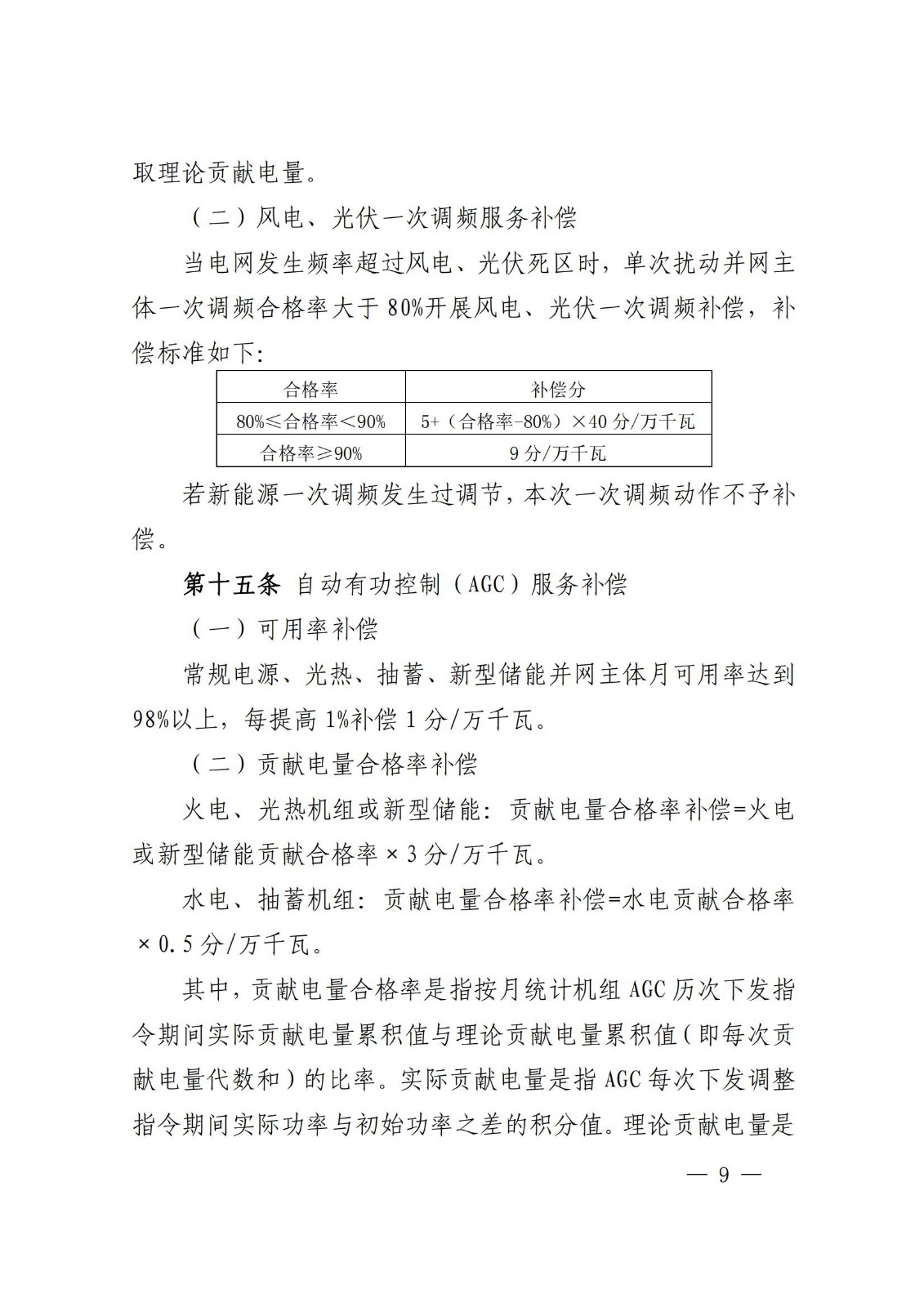 火电、光热机组或新型储能:贡献电量合格率补偿=火电或新型储能贡献合格率×3分/万千瓦(0.3元/kW)。