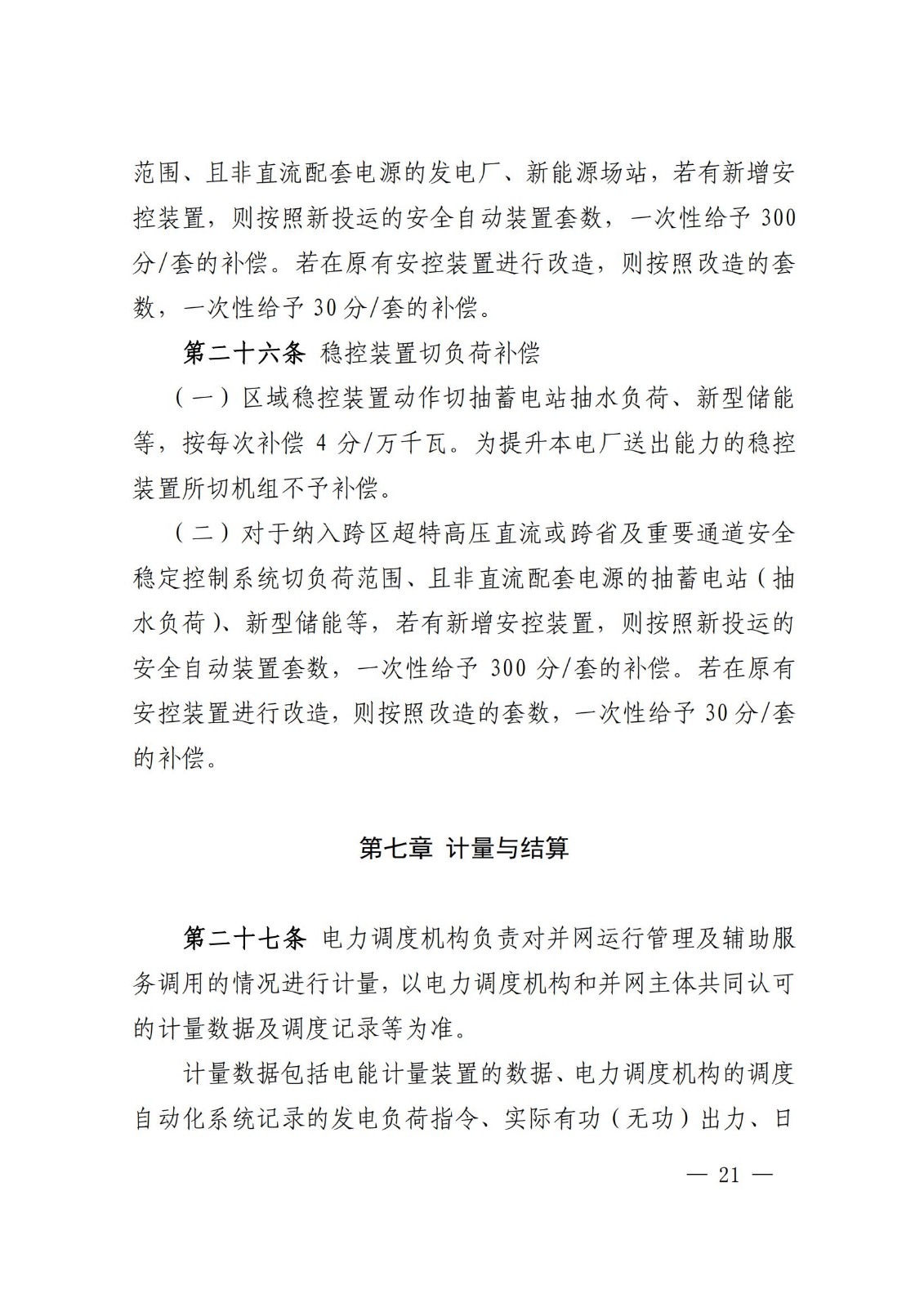 区域稳控装置动作切抽蓄电站抽水负荷、新型储能等,按每次补偿4分/万千瓦(0.4元/kW)。