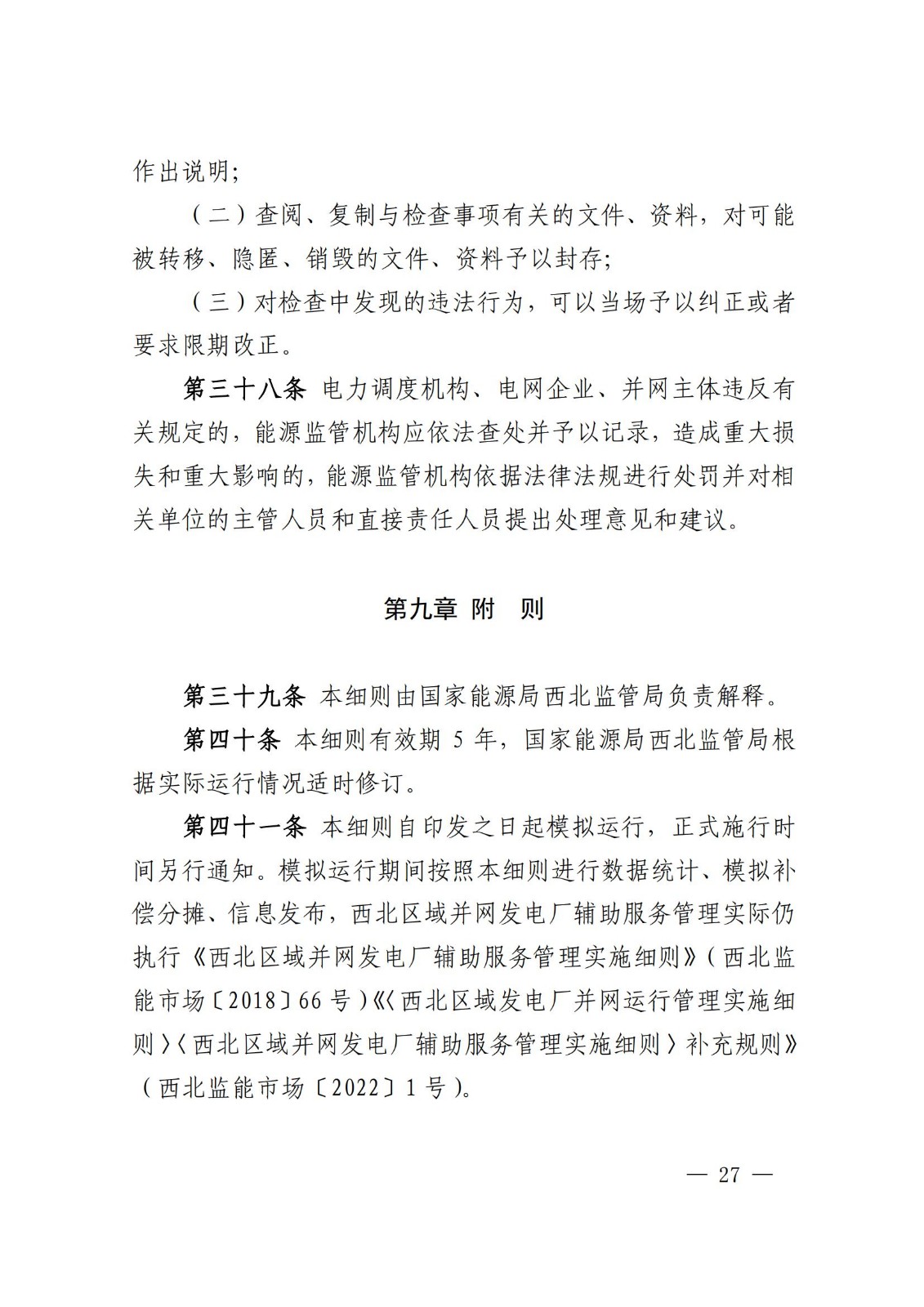 11月22日,西北能监办发布《西北区域电力并网运行管理实施细则》《西北区域电力辅助服务管理实施细则》。