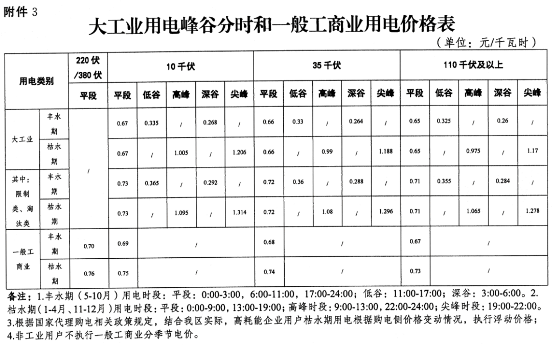 丰水期低谷电价0.335元/kWh,深谷电价0.268元/kWh,平段电价0.67元/kWh。深谷与平段电价差达0.402元/kWh。