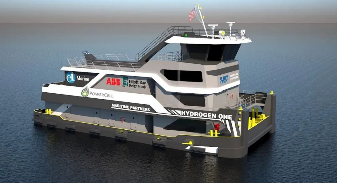 图|美国甲醇制氢燃料电池动力拖船“Hydrogen One”号