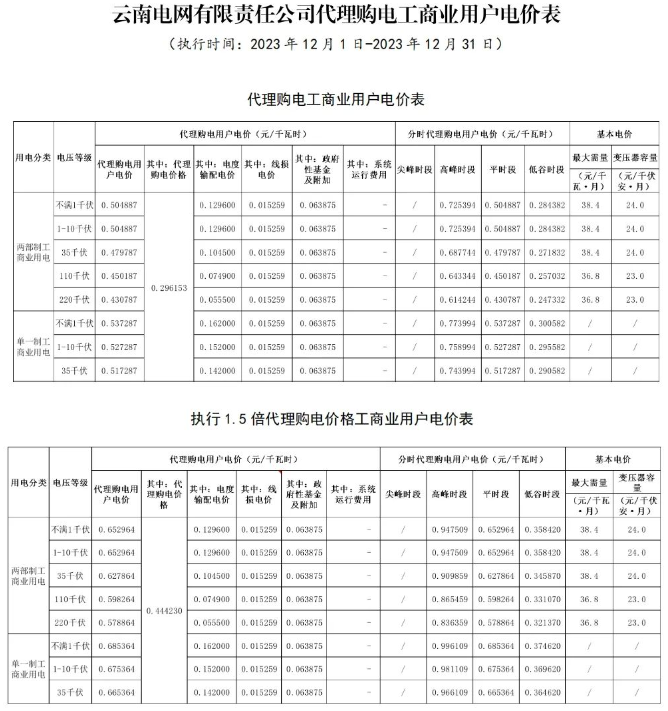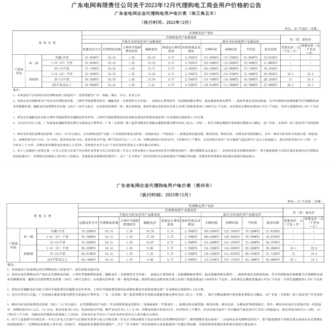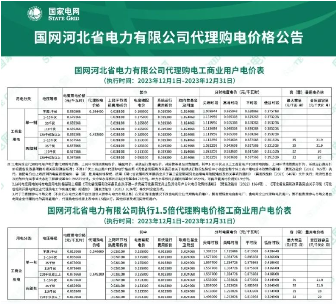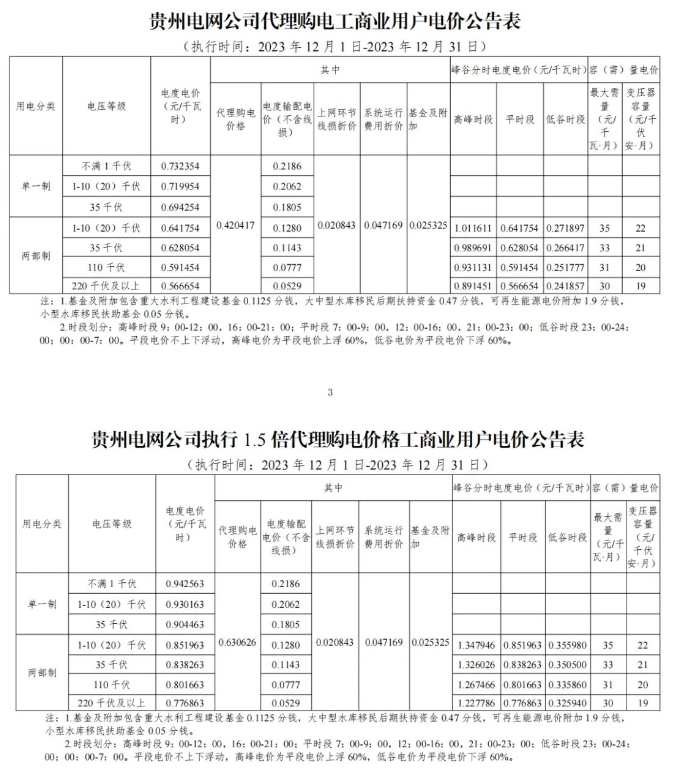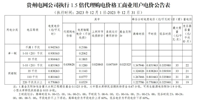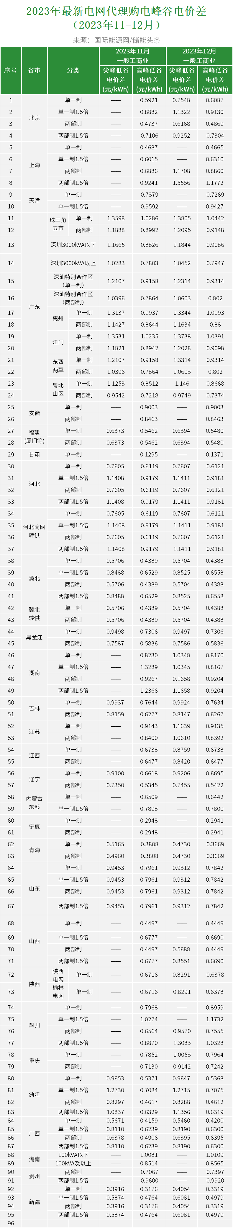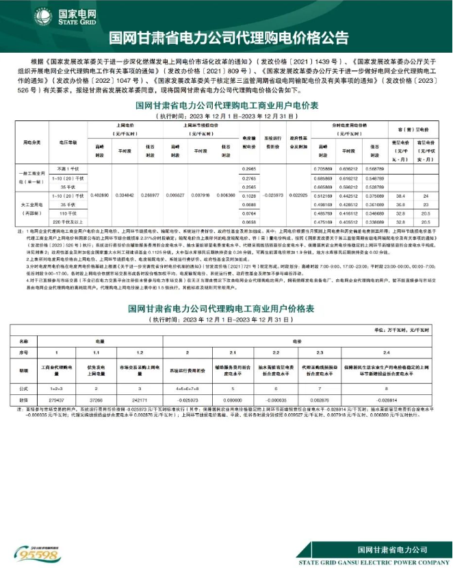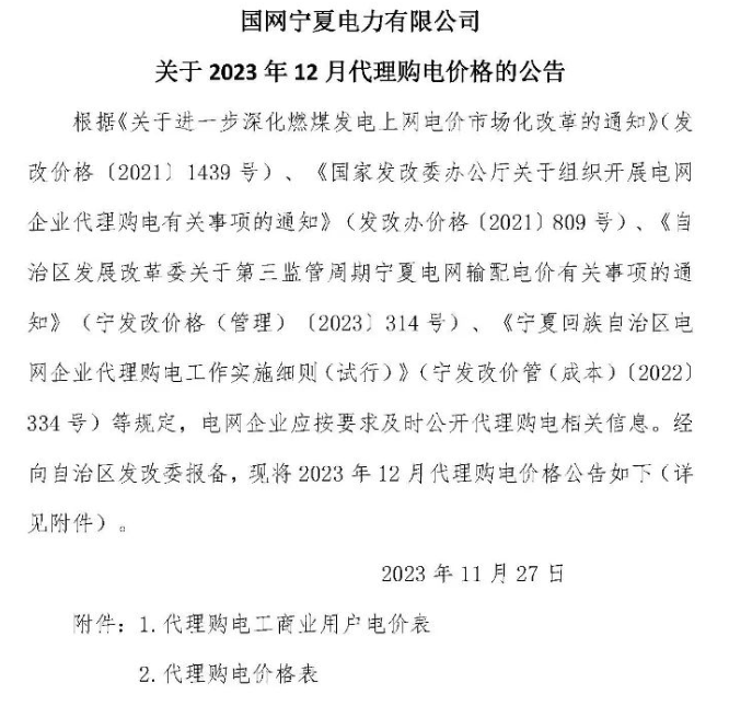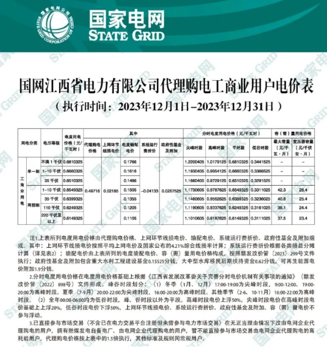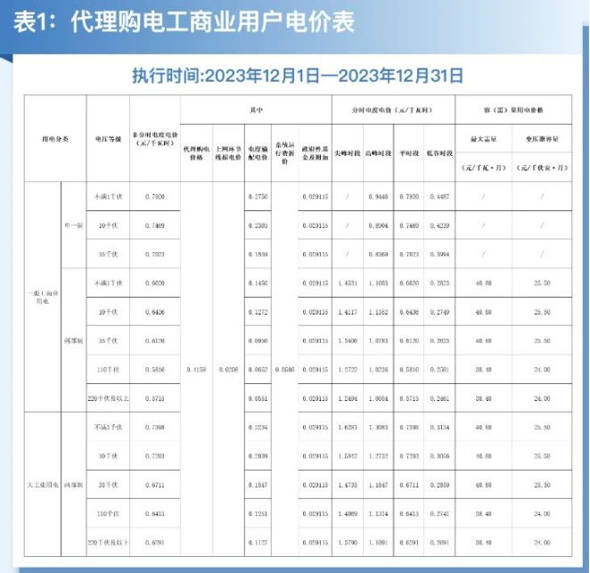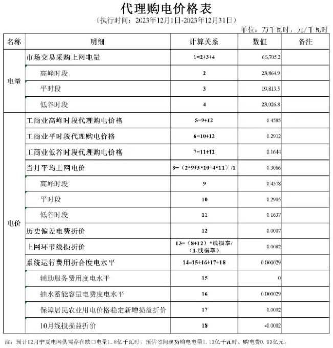 日前,2023年12月全国各地公布电网企业代理购电价格。12月安徽、甘肃、内蒙古东部、宁夏、海南、贵州等地不再执行尖峰电价。