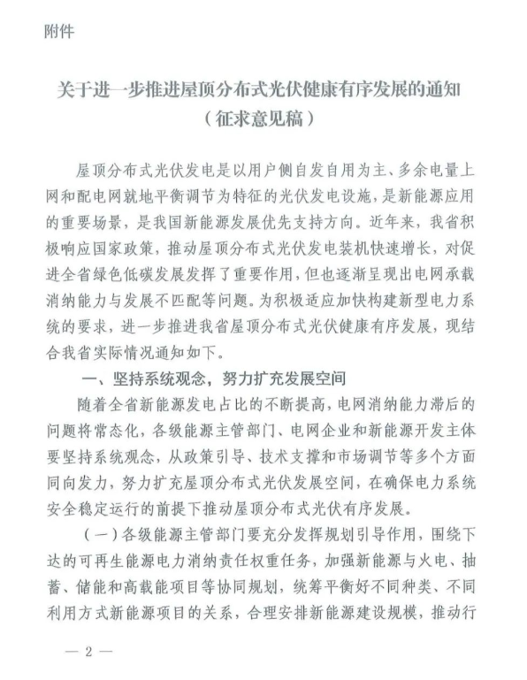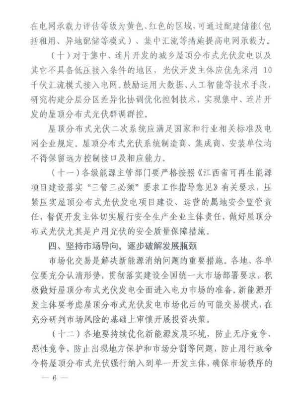 11月30日,江西省能源局印发关于进一步推进屋顶分布式光伏健康有序发展的通知(征求意见稿)》,就电网承载消纳能力与发展不匹配等问题给出针对性要求。