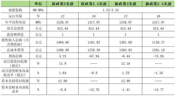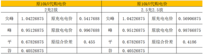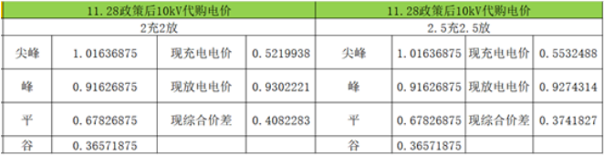 3.两充两放的情况下,综合价差即每年平均充放1度电的收益,从0.455元/kWh下降至0.4186元/kWh。