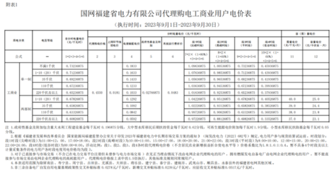 本文参照2023年9月份福建省电力公司代购电价表作为基准,如下所述:
