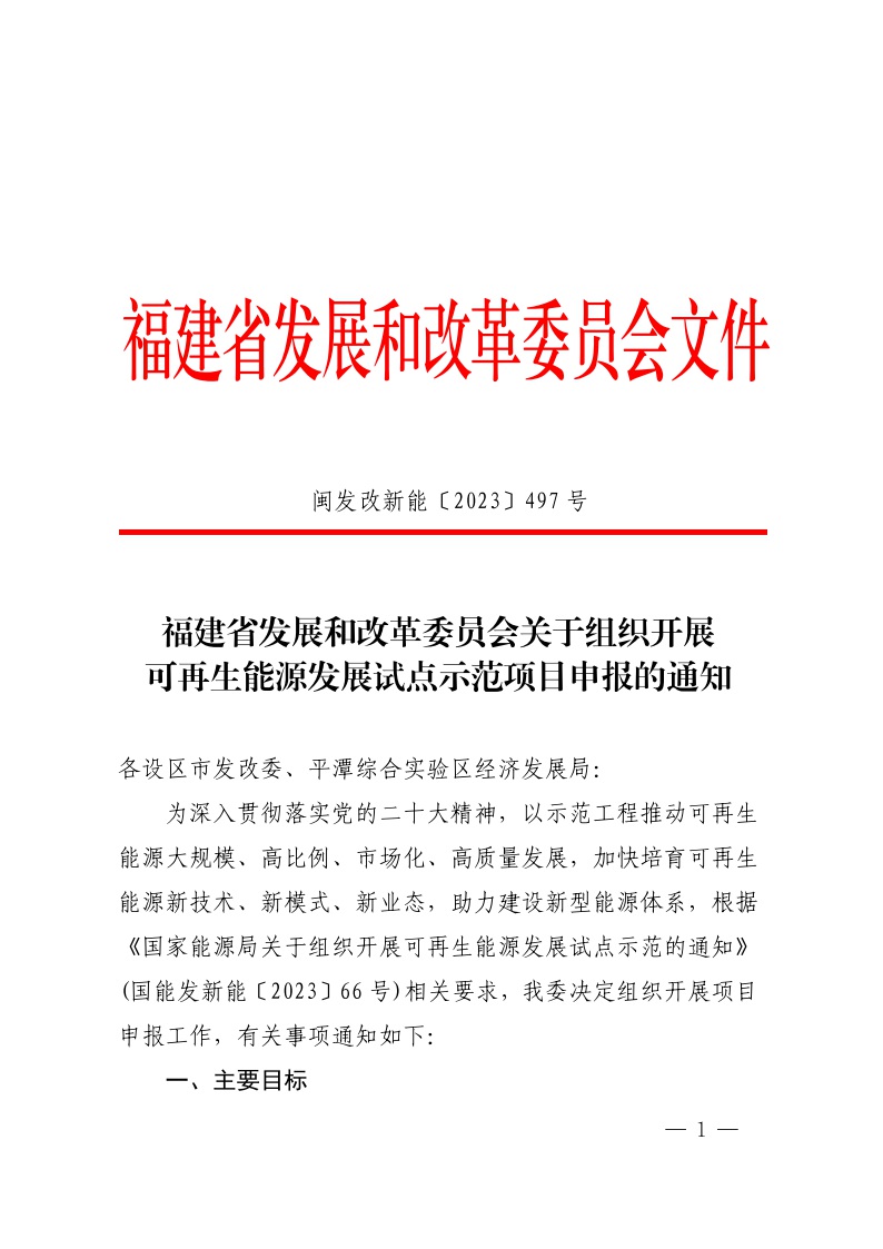 近日,福建省发展和改革委员会发布《关于组织开展可再生能源发展试点示范项目申报的通知》。