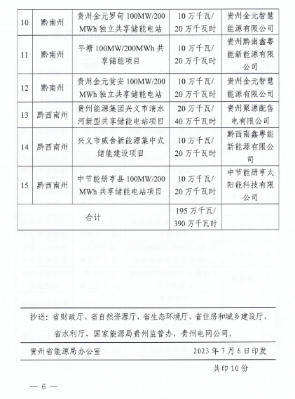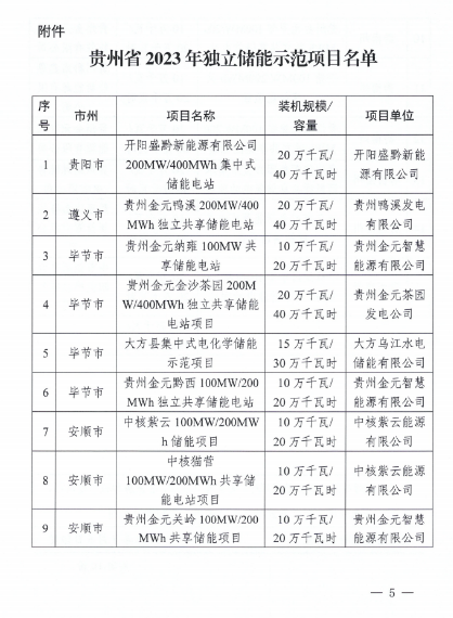 7月6日,在《省能源局 省发展和改革委员会 关于开展我省2023年独立储能示范项目建设有关工作的通知》中,贵州金元获批7个项目,容量90万千瓦/180万千瓦时,占总下发容量指标的46%。