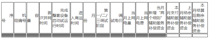 4.表中“当月新增‘两个细则’辅助服务补偿资金”指机组调试运行期某月纳入“两个细则”辅助服务补偿费用;