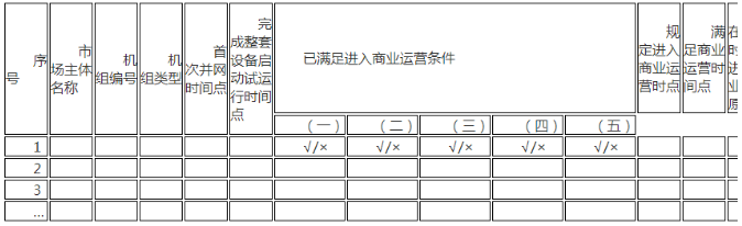 3.表中“调试电价”“当月上网电量”“当月上网电费”指机组调试运行期某月对应的调试电价、上网电量、上网电费;