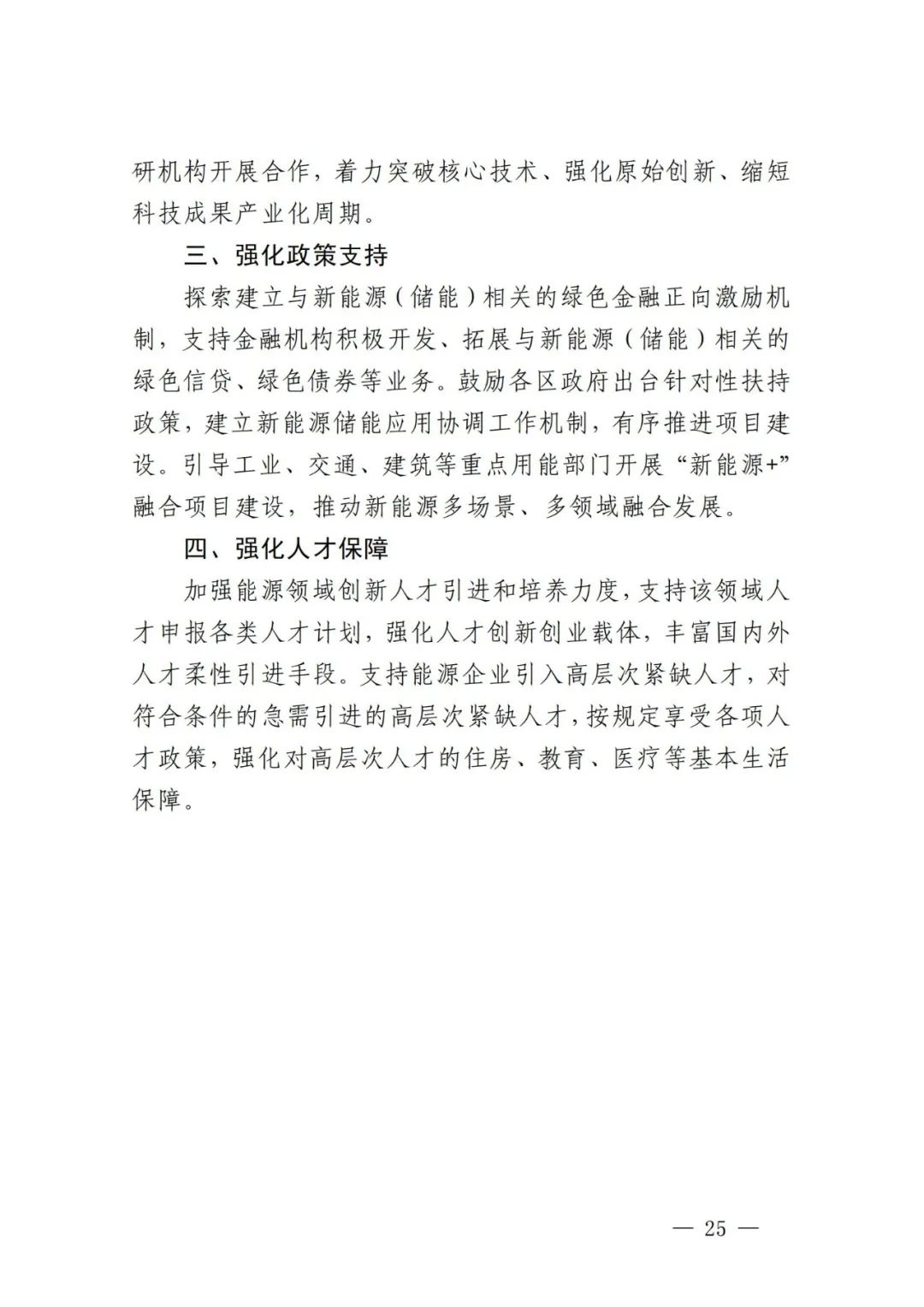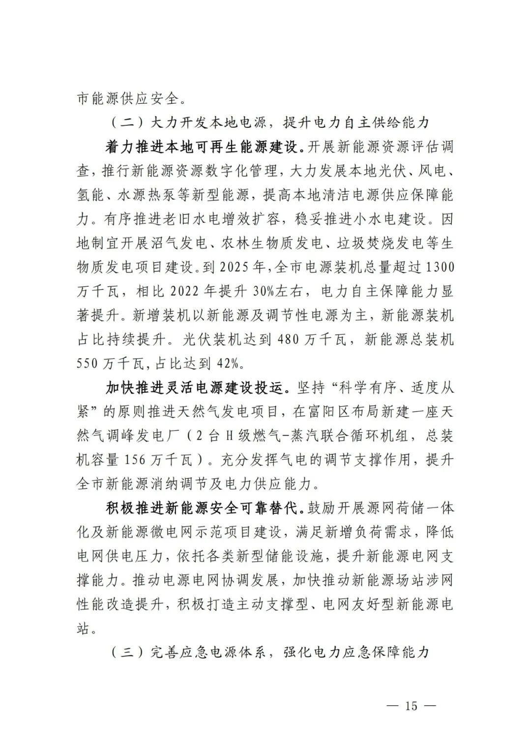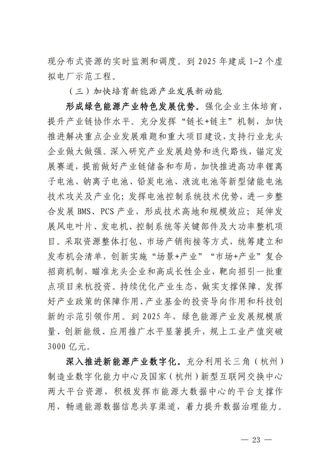 积极引导可再生能源项目配套储能。贯彻落实新增并网的风电和集中式光伏项目按照不低于装机容量10%配置储能要求,鼓励存量新能源发电项目同步配置。以整县推进、规模化开发光伏项目和分散式风电为重点,充分利用分时峰谷电价政策优势,综合运用租赁、共建或项目自建等方式配置新型储能,保障可再生能源电力就地就近消纳。将配储比例、时长、质量等作为新能源项目配置的重要因素,在下达可再生能源开发建设计划时,消纳条件好、配储比例高的项目优先列入计划。到2025年,可再生能源项目配套储能容量达到10万千瓦以上,2035年达到50万千瓦左右。