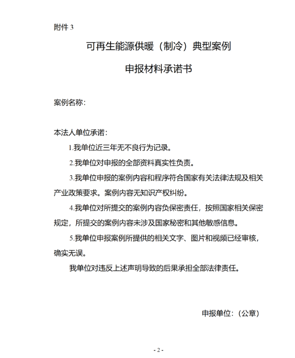 3.可再生能源供暖(制冷)典型案例申报材料承诺书