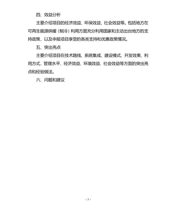 一、申报项目类型主要包括采用了太阳能、地热能、生物质能、风能、海洋能等可再生能源用于供暖(制冷)、供热工业利用、供热农业利用、供热综合利用等领域的项目。申报项目应正常运行至少2个周期,且目前正常在运、可复制、可推广。