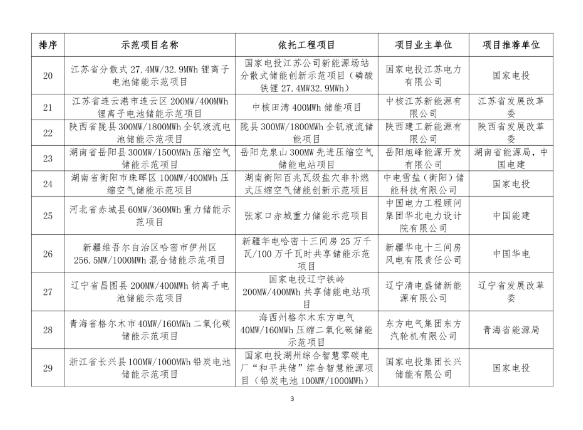 国家能源局综合司关于公示新型储能试点示范项目的通知