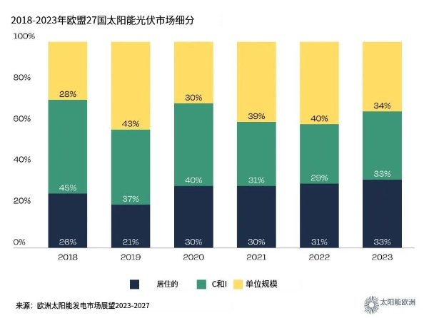 2023年底,欧盟太阳能发电总量目前达到263GW,比2022年的207GW增长 27%。