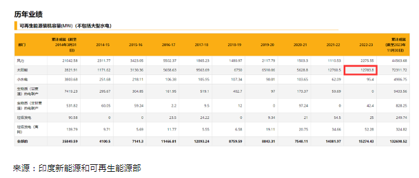 根据印度官方公告,截至2023年11月底,印度实现新增装机12.78GW。以此测算,印度在2023年全年或将实现14GW装机。2022年,印度新增光伏装机为18.1GW。