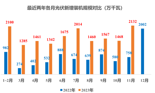 通过上述17GW的地面电站并网数据和47.9%的占比,恒盛娱乐就不难推算出我国在2023年12月份的光伏装机数据。如果集中式和分布式的比例在12月份变化不大的话,那么12月份我国光伏装机有可能达到35GW甚至更多。