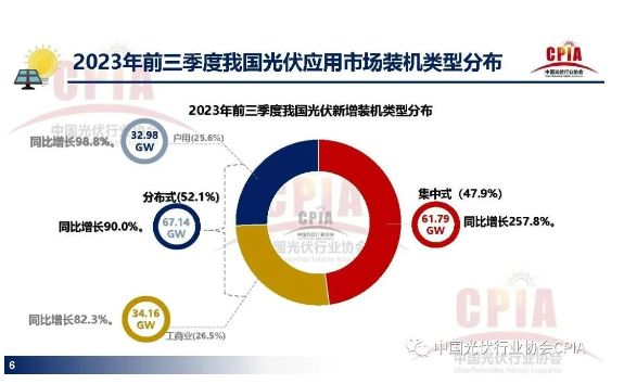 另据中国光伏行业协会统计,2023年前三季度,我国集中式电站实现装机61.69GW,占比47.9%。