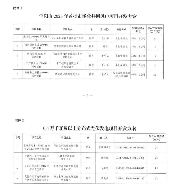 12月30日,河南省发展和改革委员会发布《关于印发0.6万千瓦及以上分布式光伏发电项目以及信阳市2023年首批市场化并网风电项目开发方案的通知》。