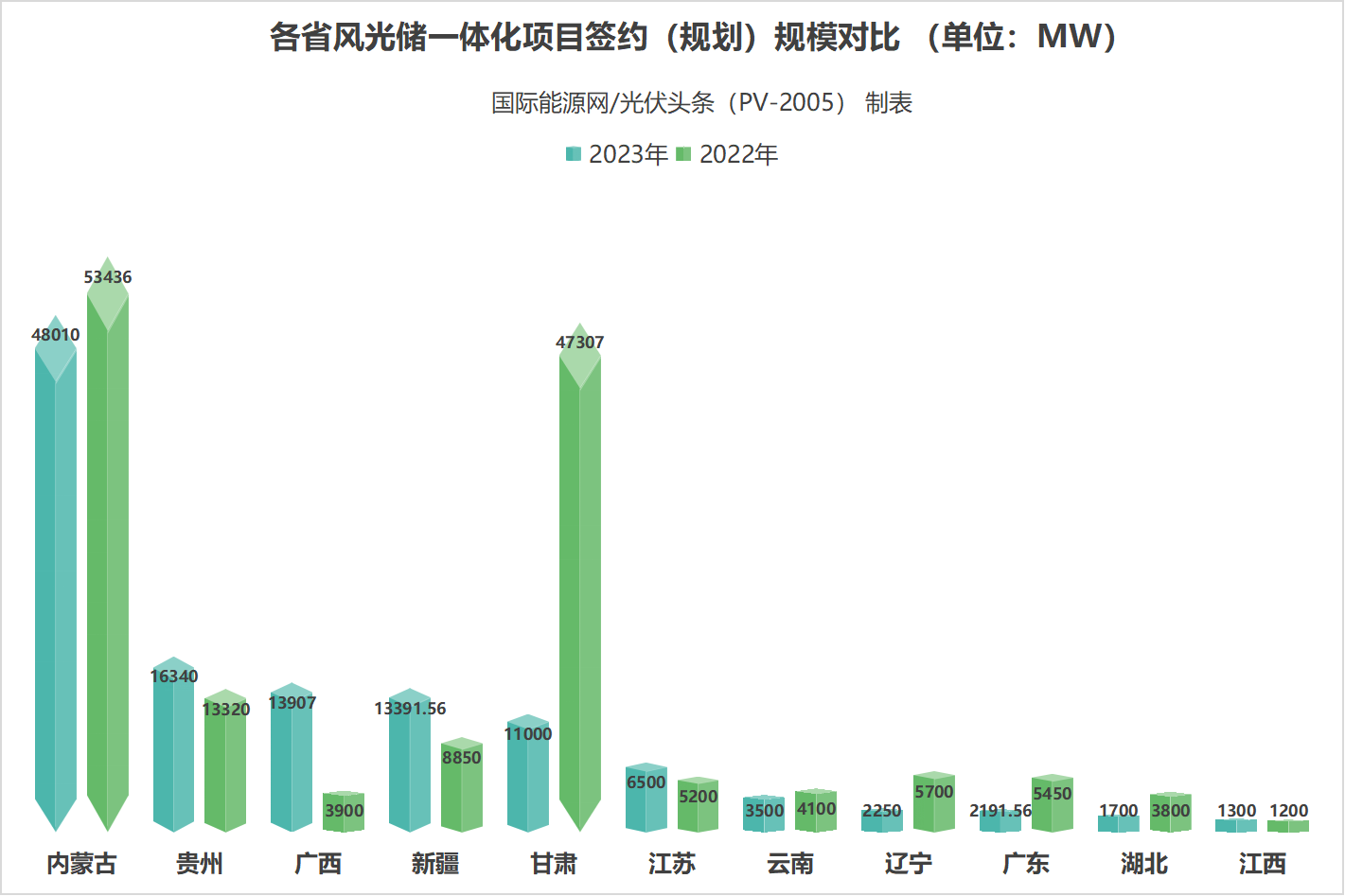2023年1月,国际能源网/光伏头条(PV-2005)曾发文,2022年全国共签约/规划风光储项目83个,已明确的项目规模为191.553GW,已明确的投资金额为6633.46亿元。