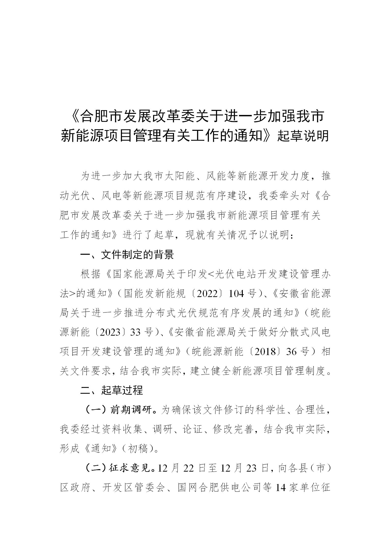 附件2:《合肥市发展改革委关于进一步加强我市新能源项目管理有关工作的通知》起草说明