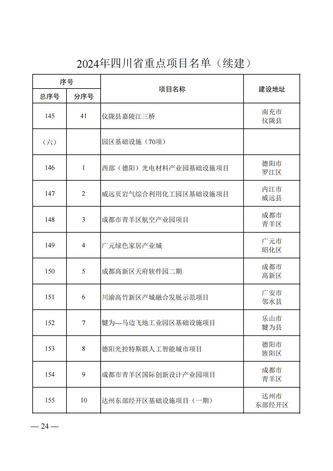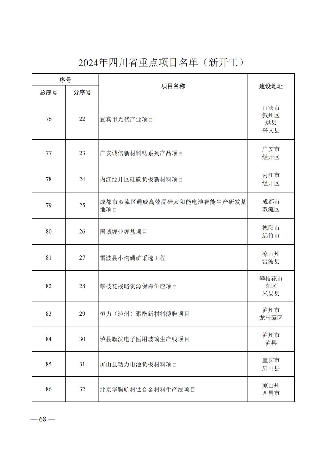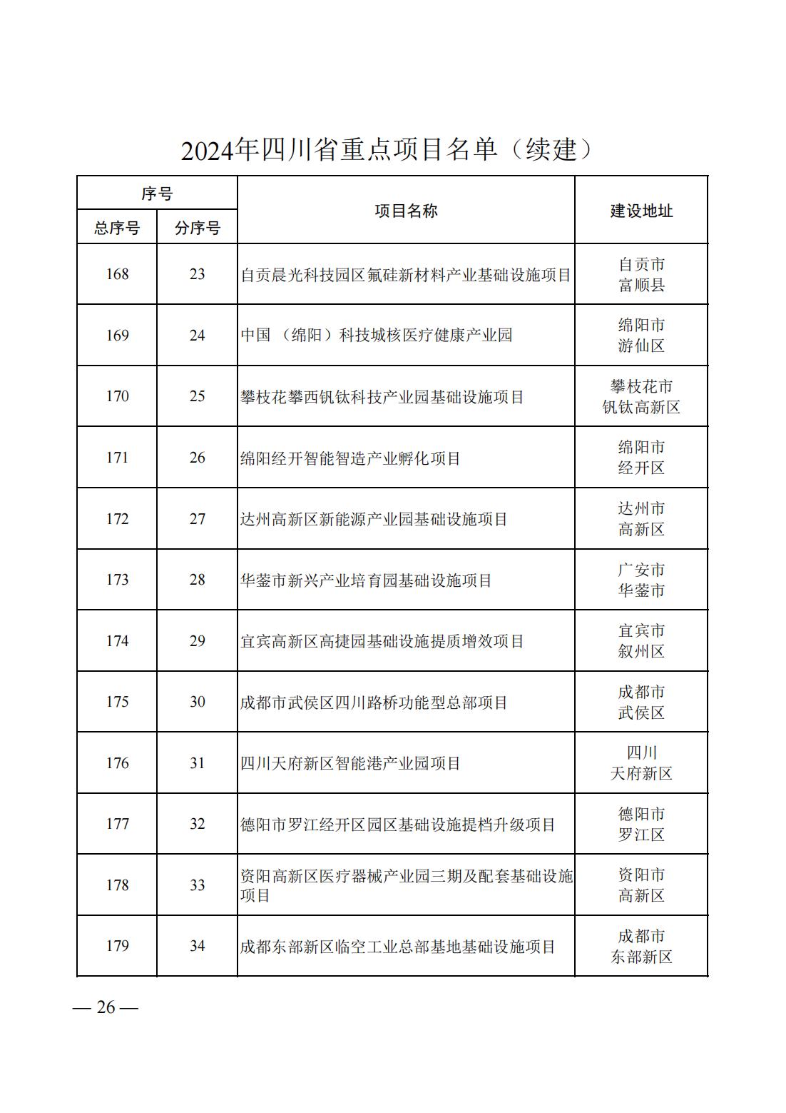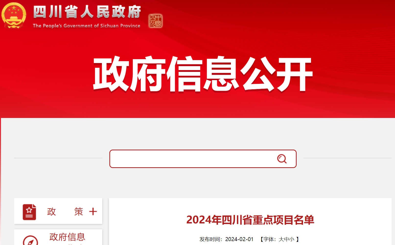 2月1日,四川省人民政府发布2024年四川省重点项目名单。
