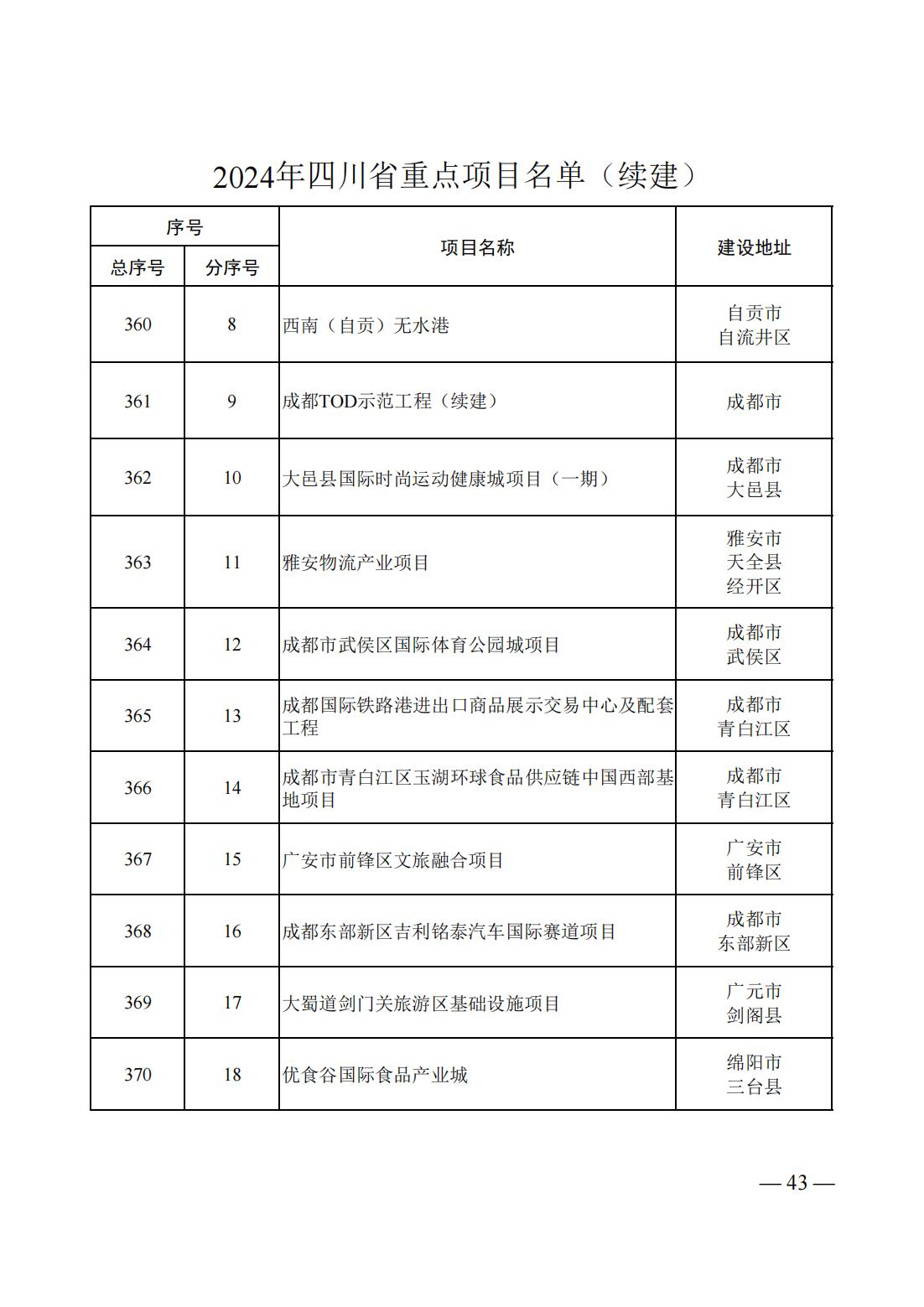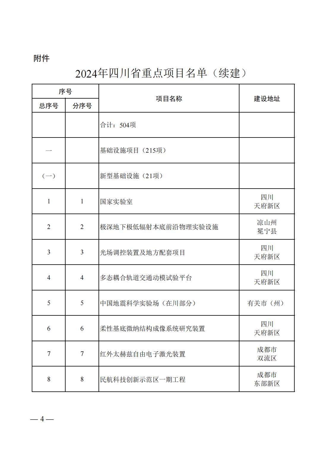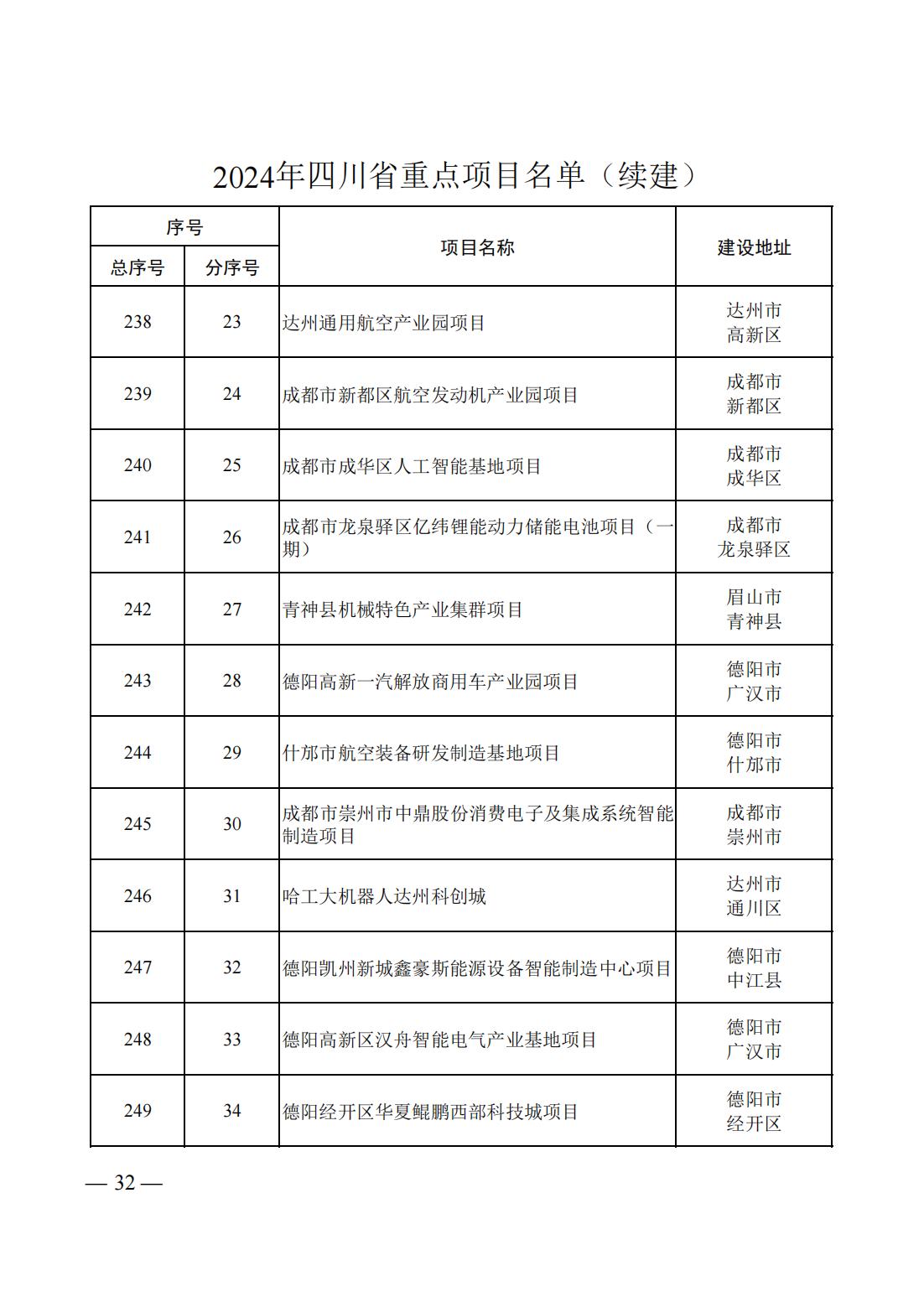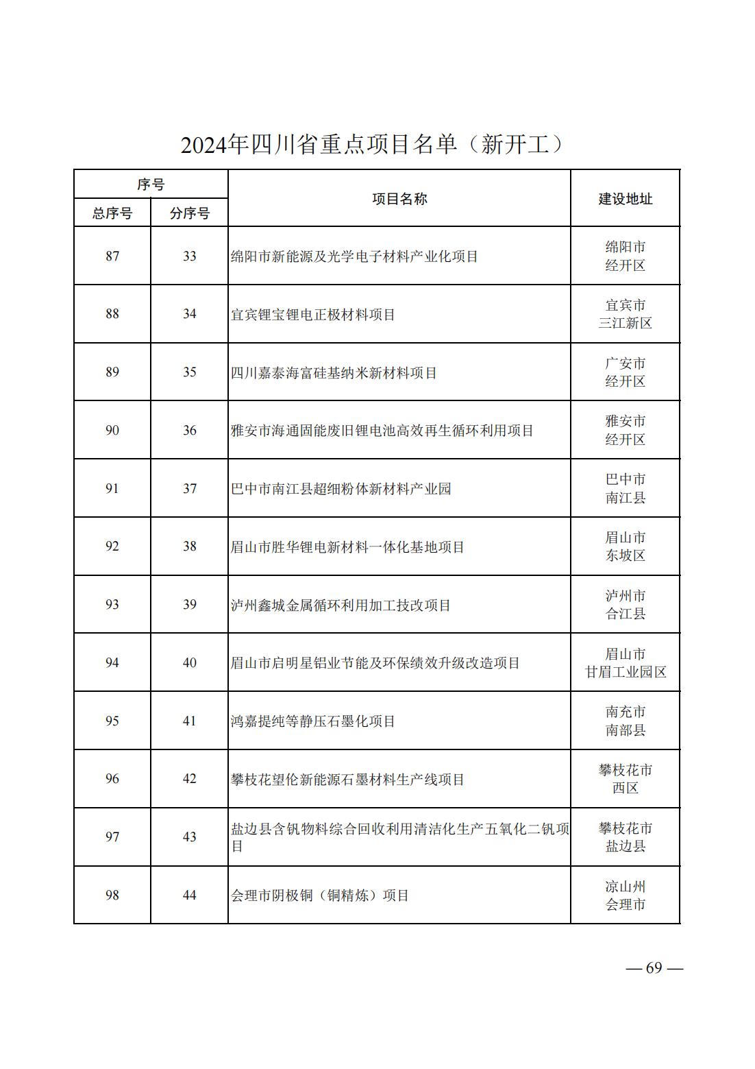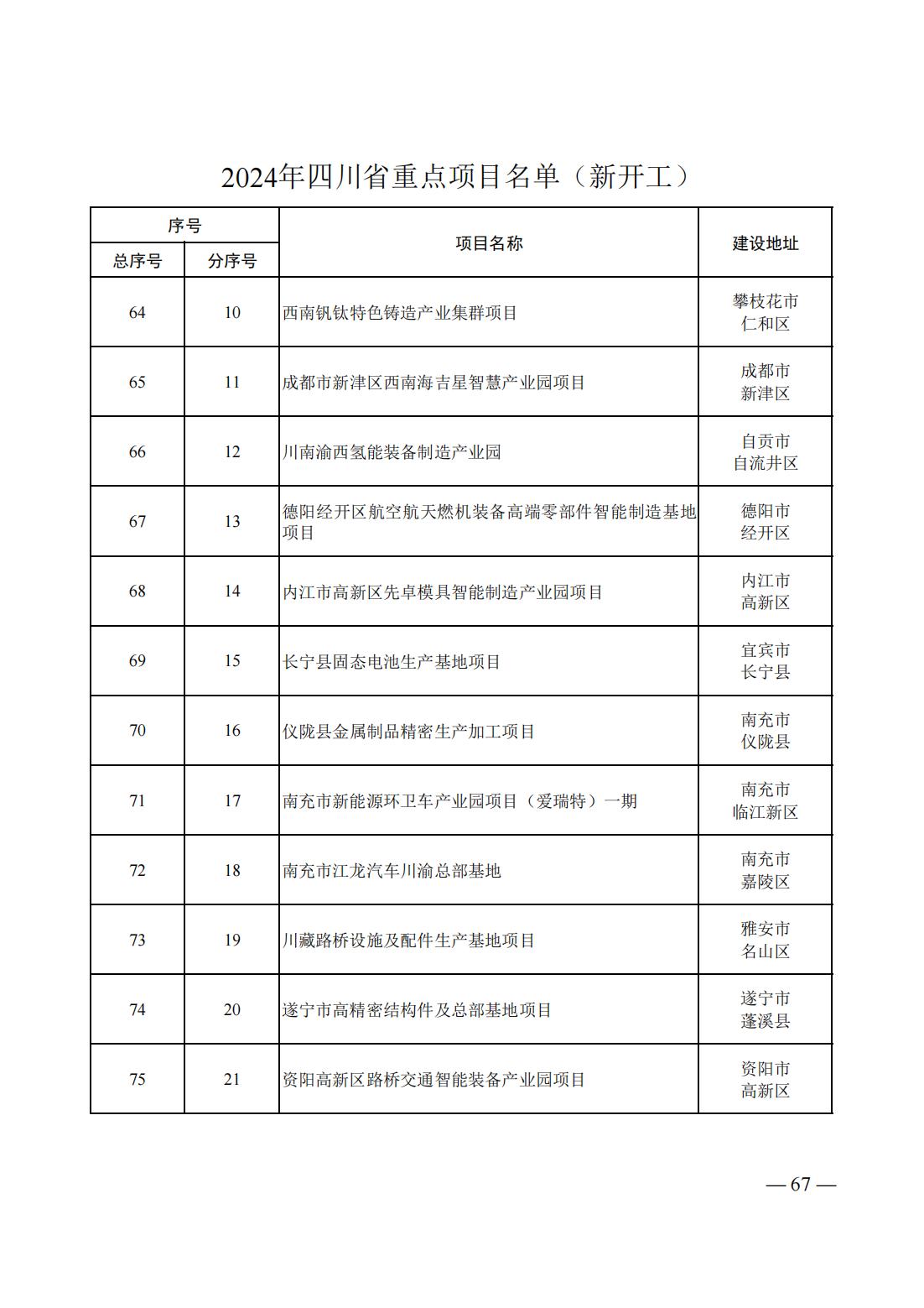 2月1日,四川省人民政府发布2024年四川省重点项目名单。