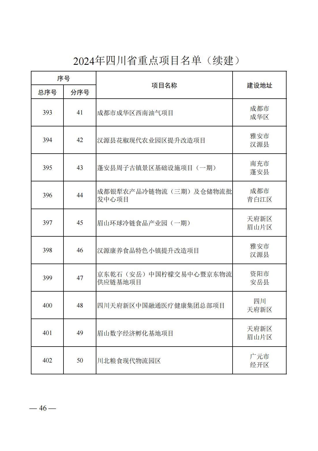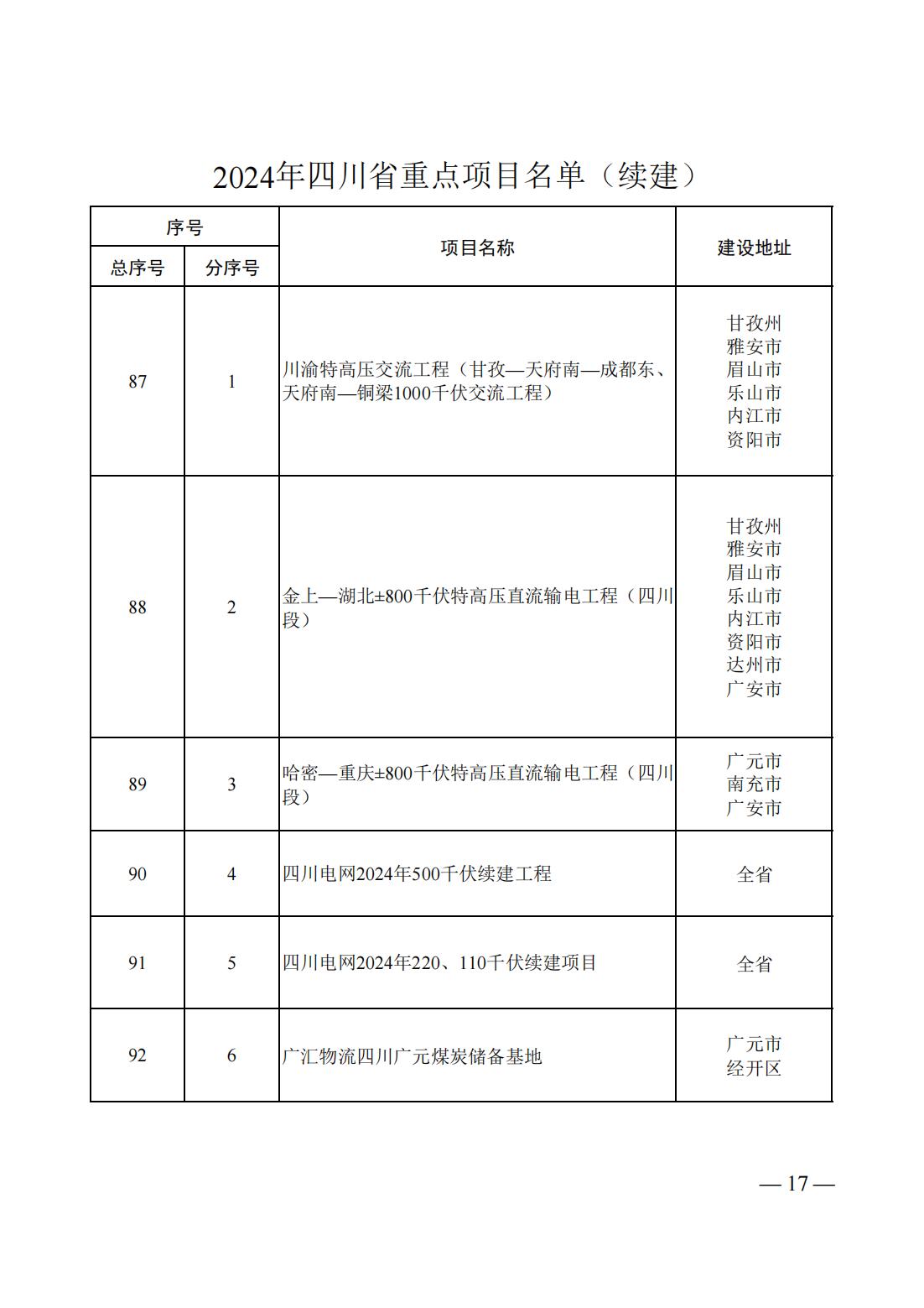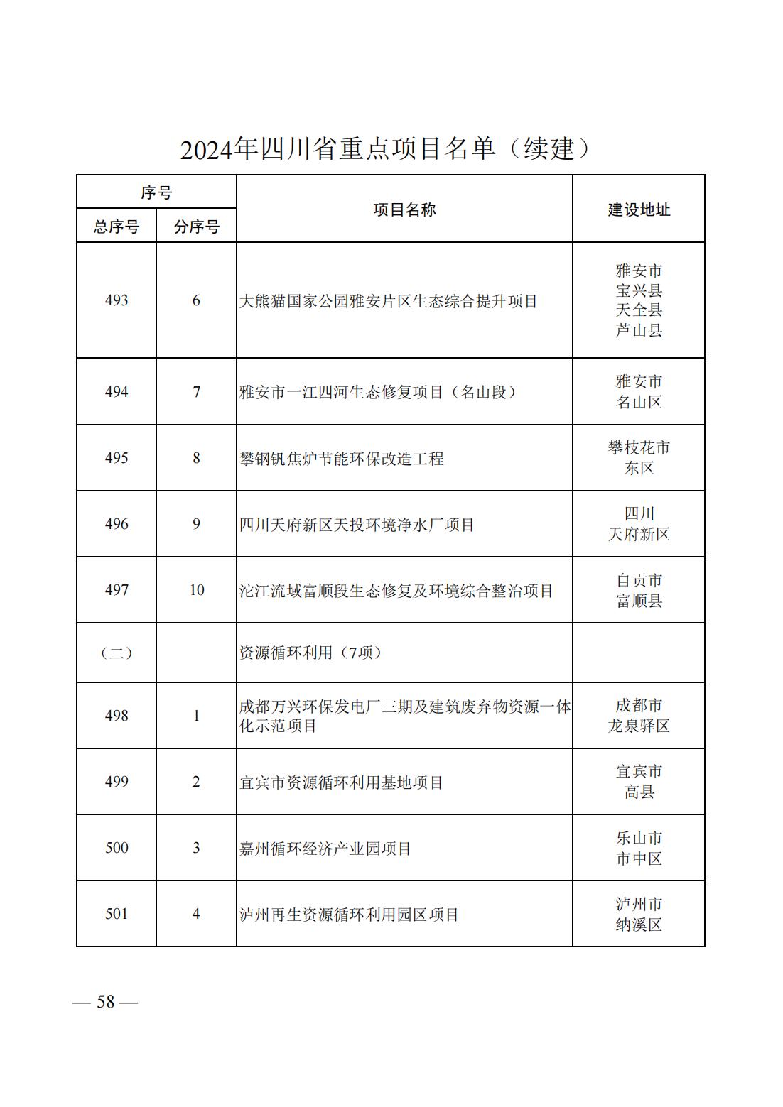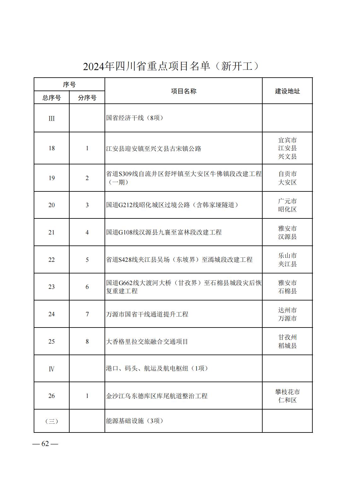 2月1日,四川省人民政府发布2024年四川省重点项目名单。