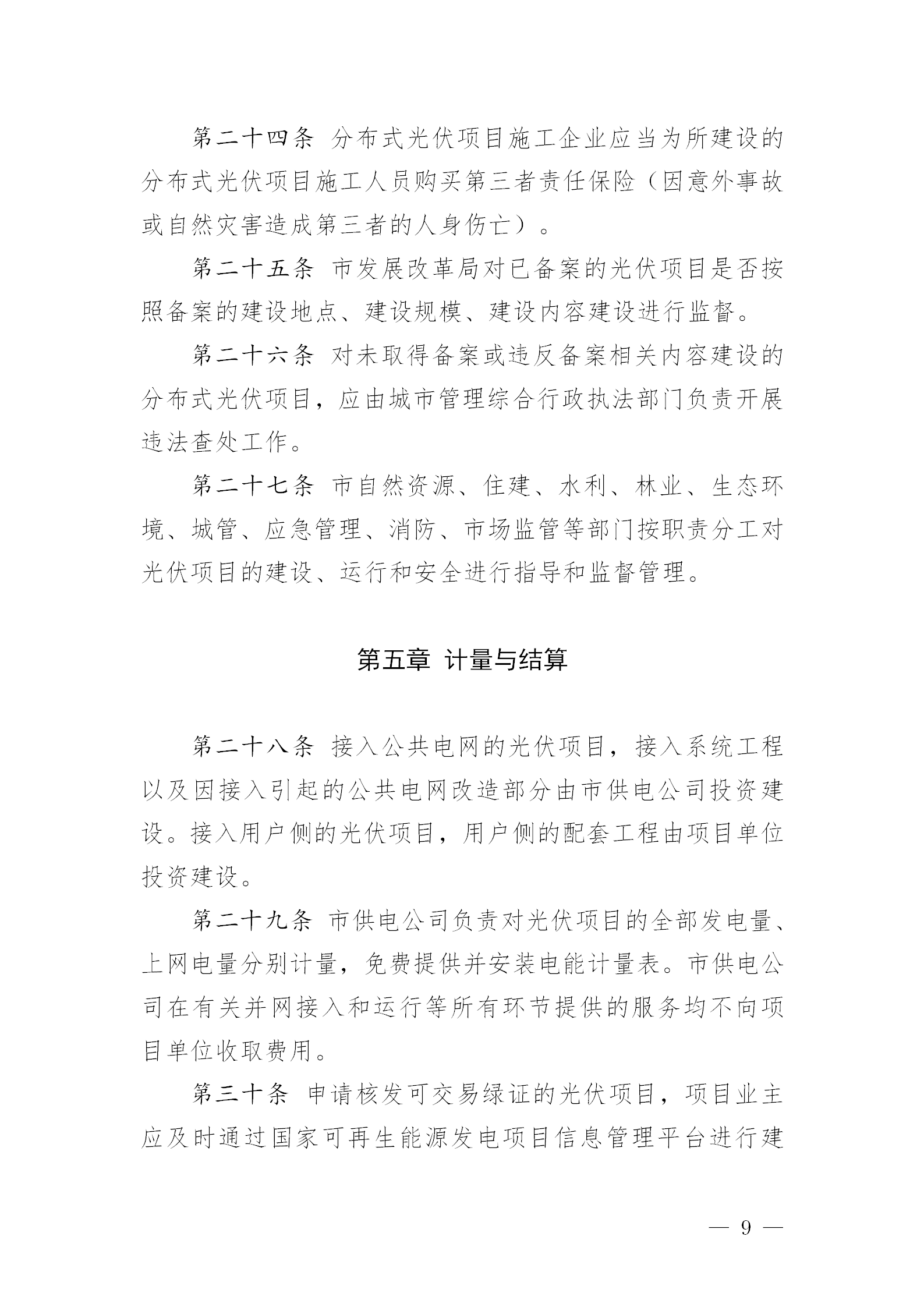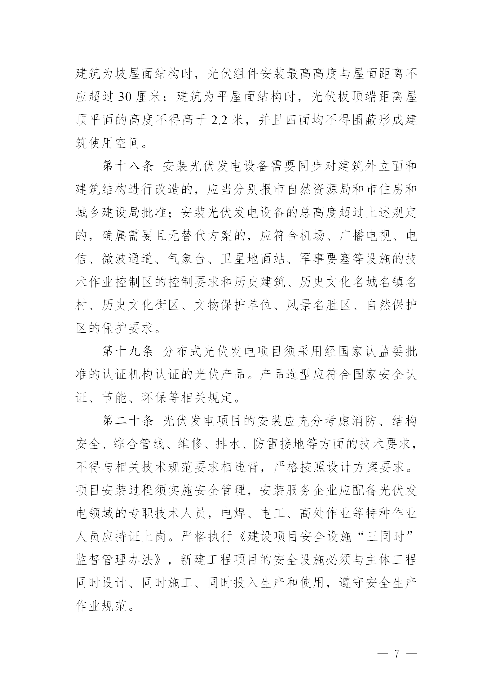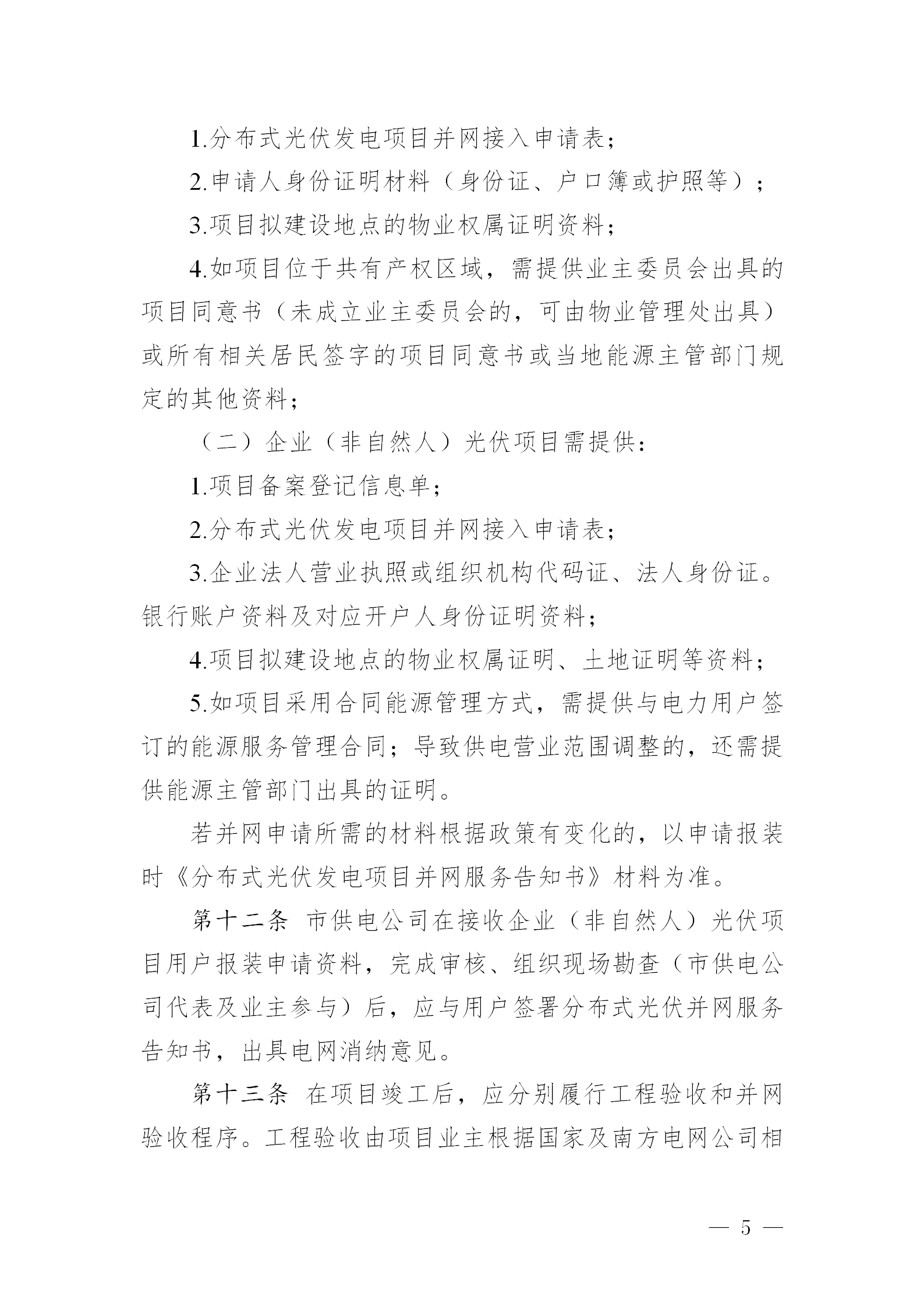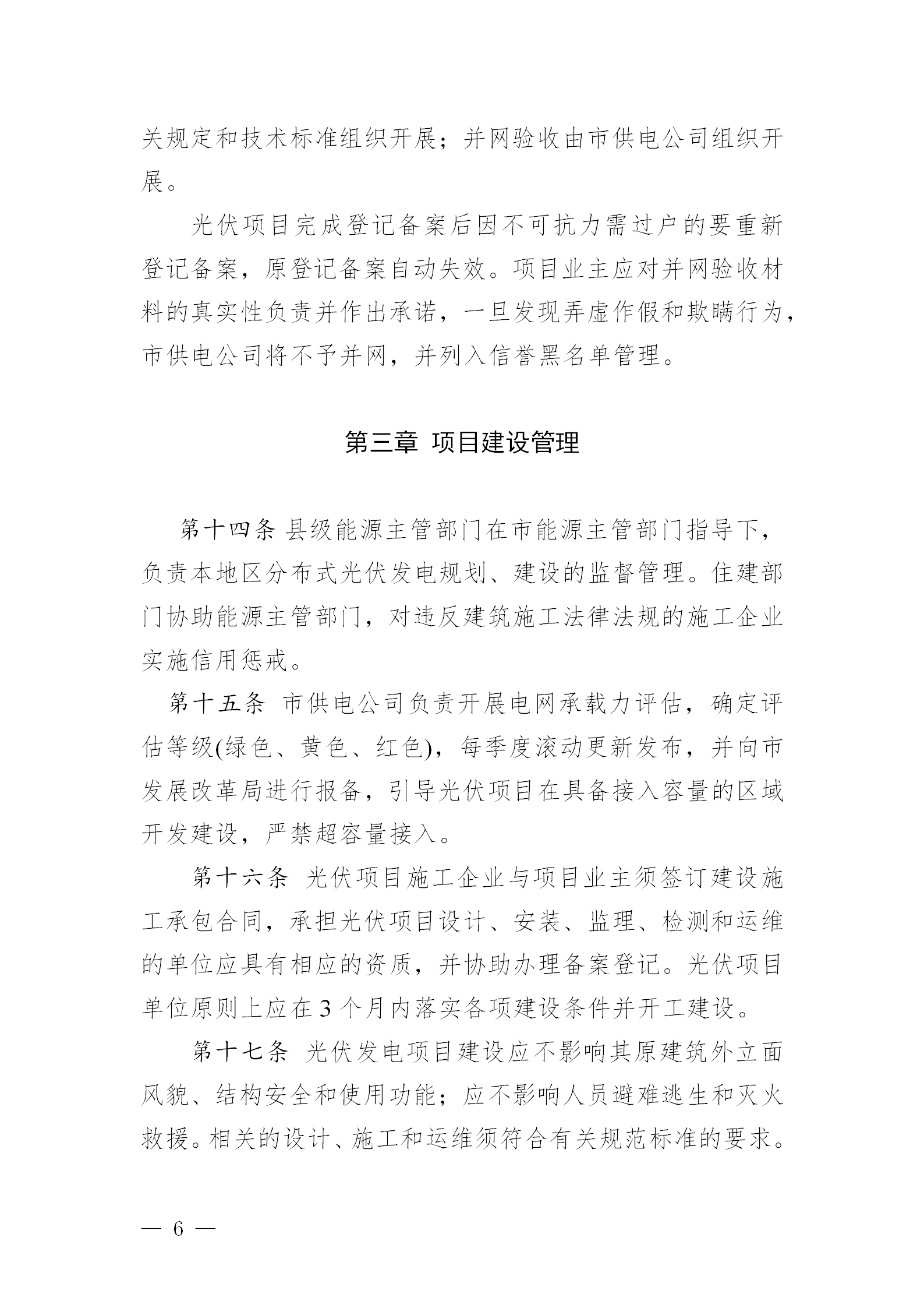 文件明确要求,市发展改革局按照“分类开发、分步实施、就近消纳”的原则会同市供电公司及有关部门以电网接入和消纳能力为前提制定本地区分布式光伏开发建设计划。纳入开发建设计划的光伏项目,落实资源、用地、电网接入等条件后方可申请并网。未按要求纳入本地区分布式光伏开发建设计划的项目,不得开工建设、不予受理并网申请。