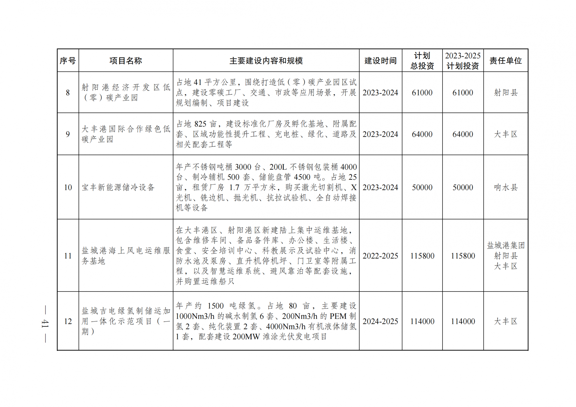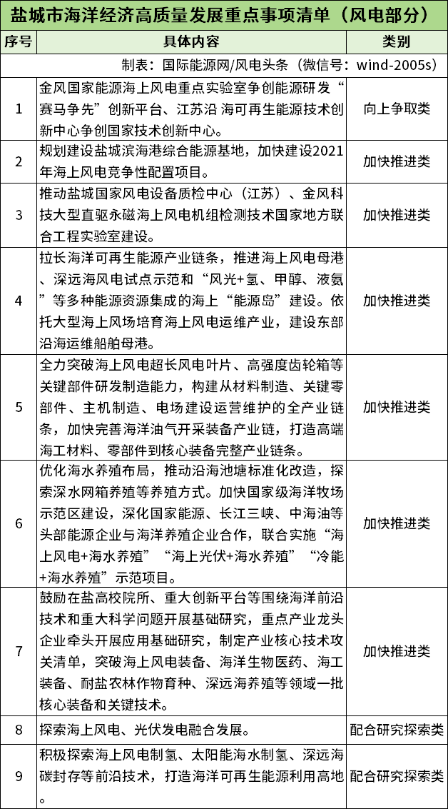 盐城市海洋经济高质量发展重点风电事项清单如下表所示: