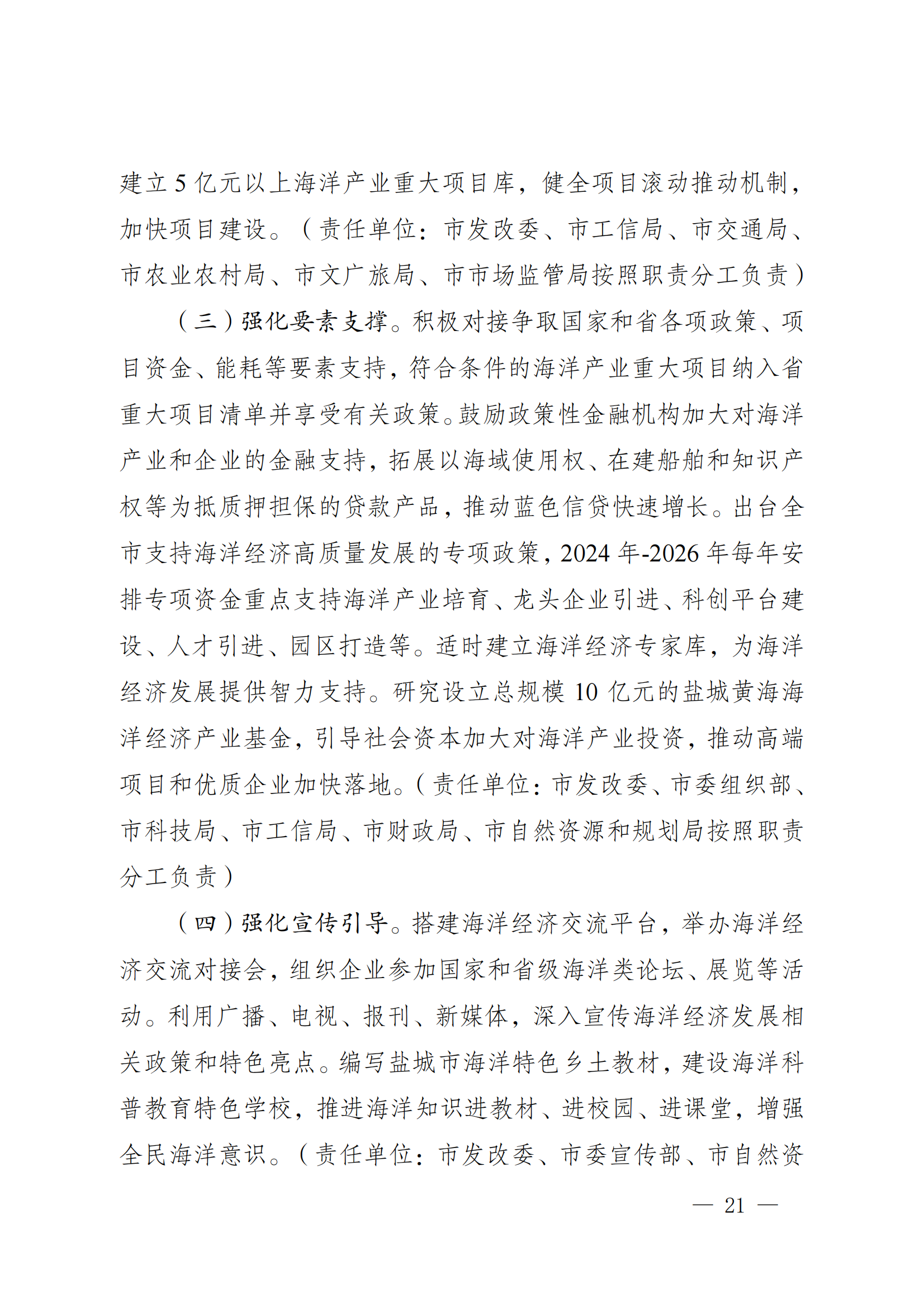 盐城市人民政府关于印发盐城市海洋经济高质量发展三年行动计划(2024-2026年)的通知