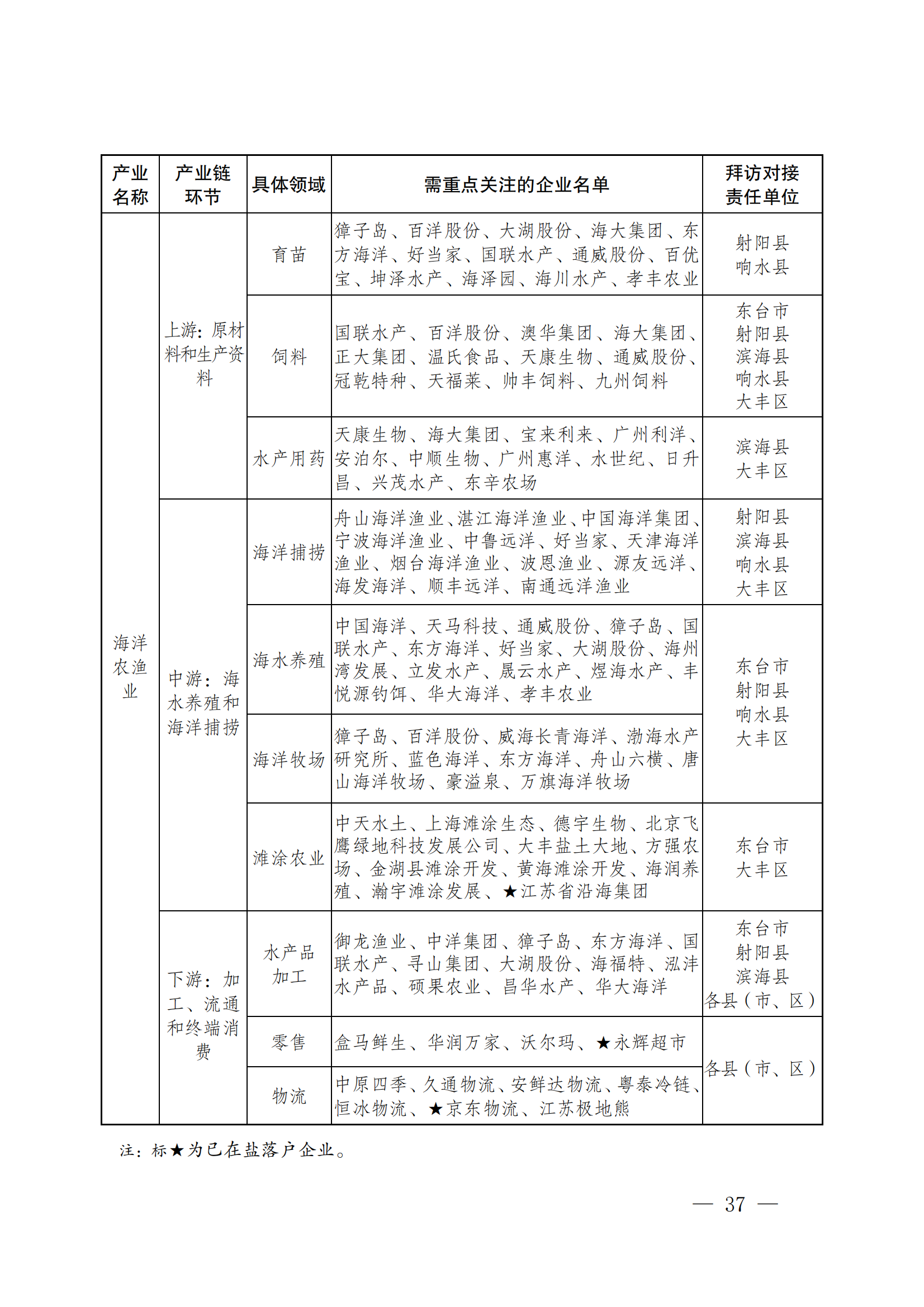 盐城市海洋产业相关重点海上风电产业链图表清单如下表所示:
