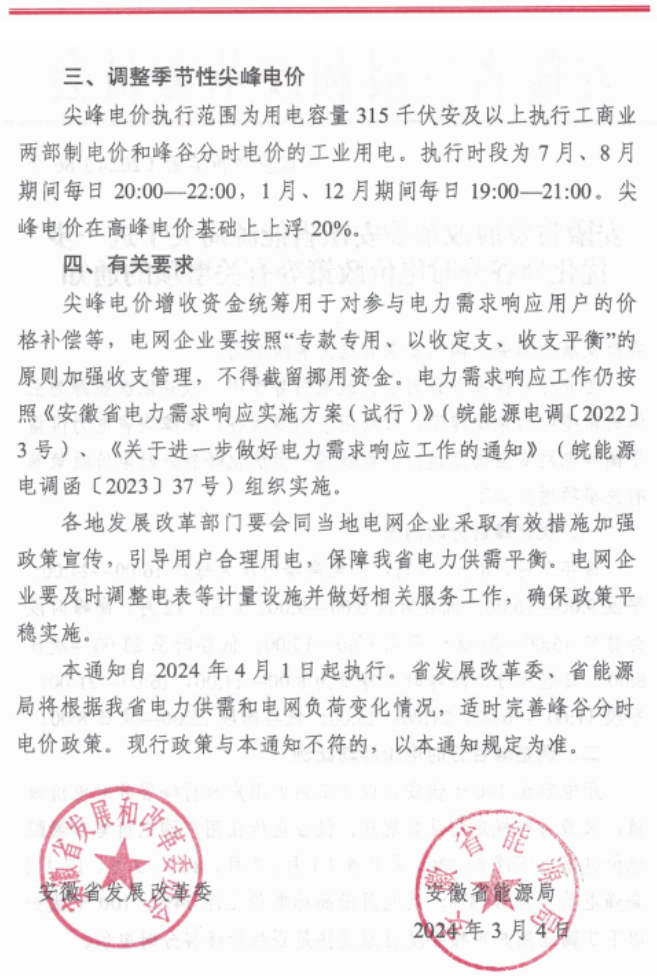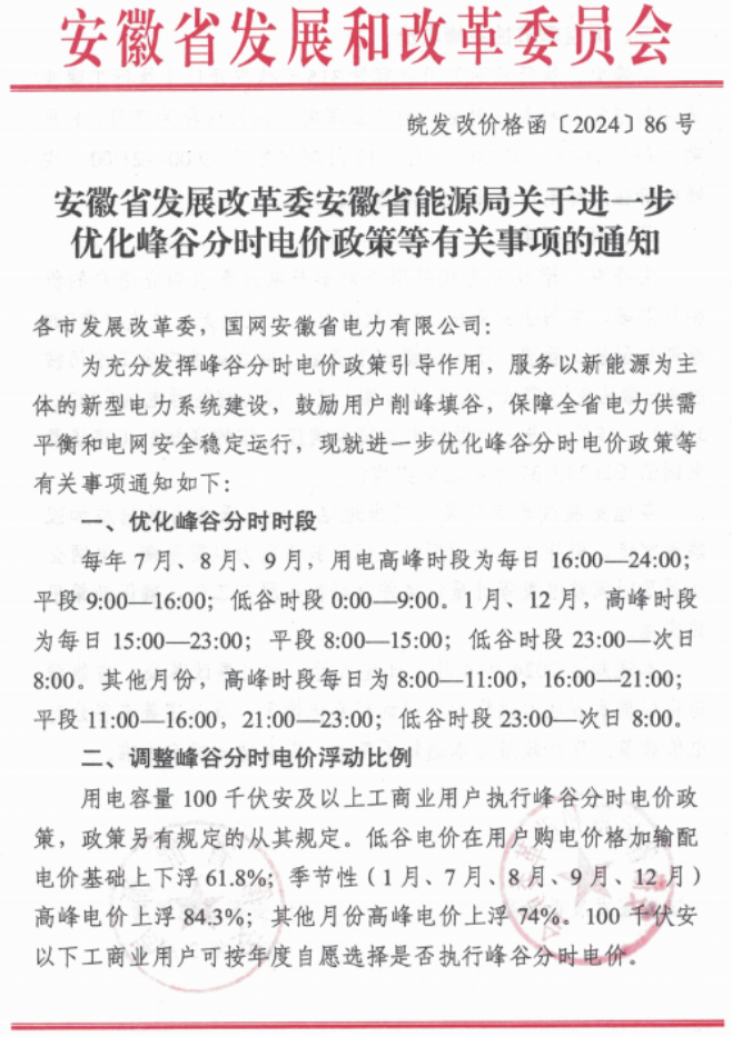近日,安徽省发展改革委安徽省能源局发布关于进一步优化峰谷分时电价政策等有关事项的通知。