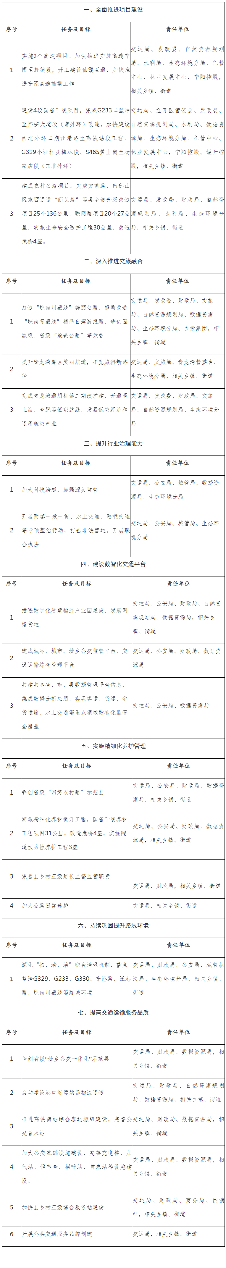 11.开展两客一危一货、水上交通、重载交通等专项整治行动。(责任单位:交运局,配合单位:公安局、城管局、数据资源局、生态环境分局)