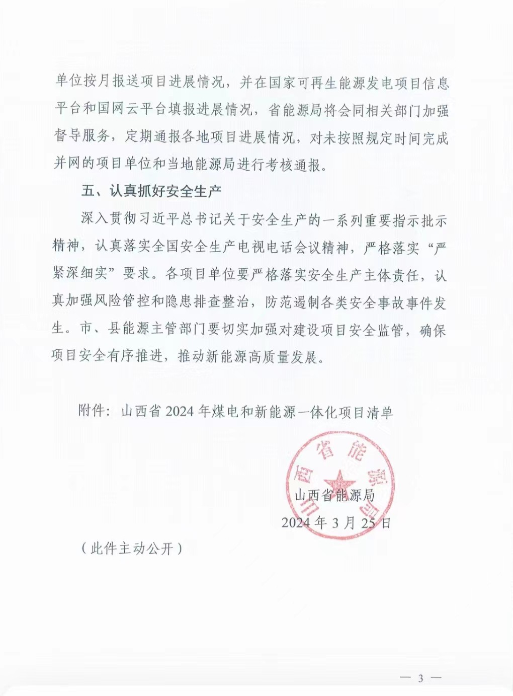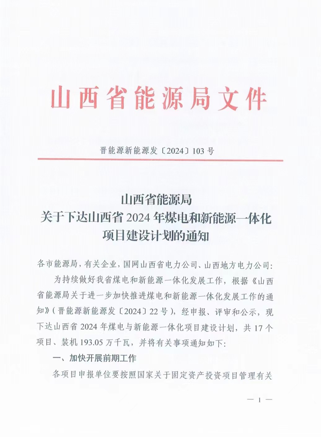 3月25日,山西省能源局下发《关于下达山西省2024年煤电和新能源一体化项目建设计划的通知》(晋能源新能源发〔2024〕22号),下达山西省2024年煤电与新能源一体化项目建设计划,共17个项目、装机193.05万千瓦。