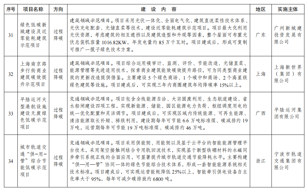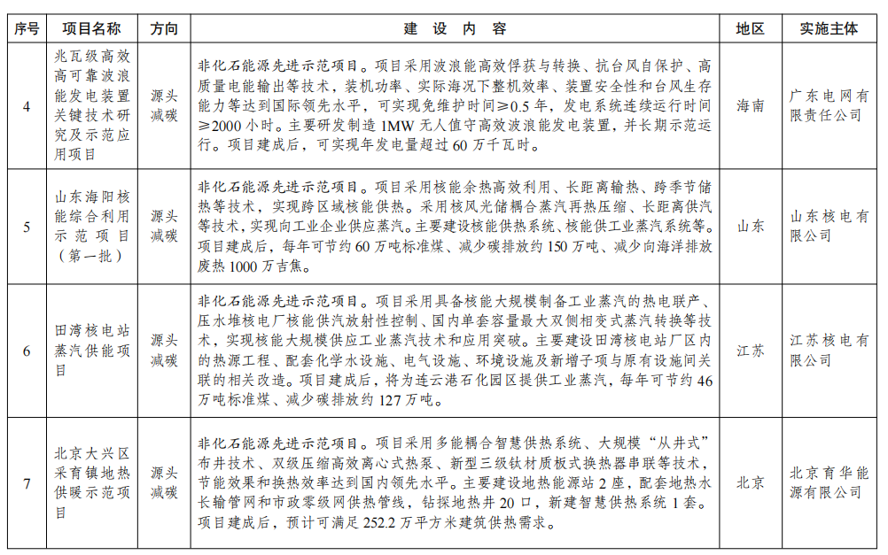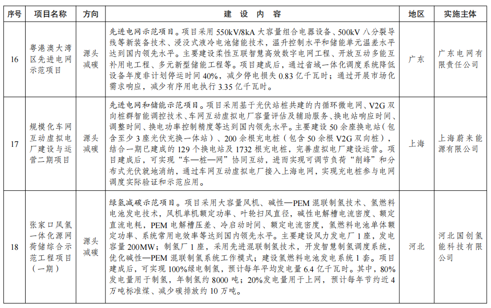 日前,国家发改委办公厅发布关于印发《绿色低碳先进技术示范项目清单(第一批)》的通知。清单共计47个项目,包括22个源头减碳项目、19个过程降碳项目、6个末端固碳项目。涉及业主包括国家电投、中能建、中建集团、皖能、湘投以及蔚来汽车等企业。项目类别包括风、光、储、氢、波浪能、地热能等多个新能源项目。
