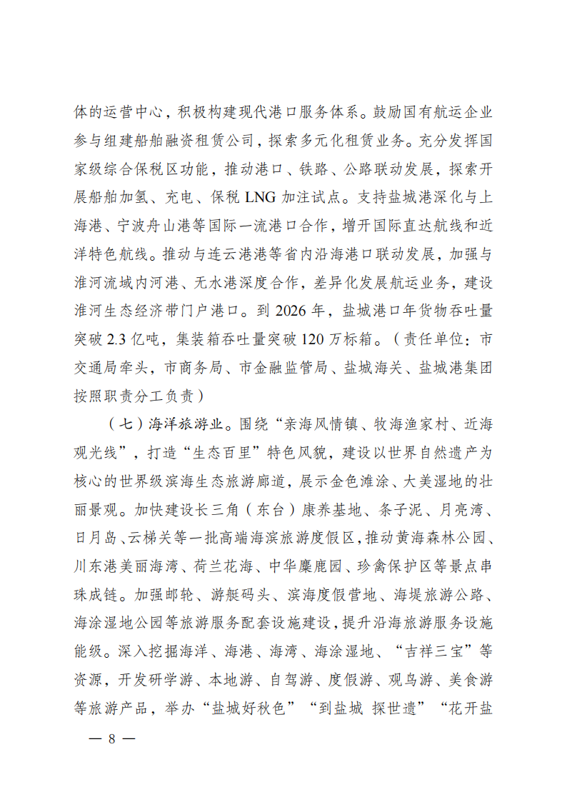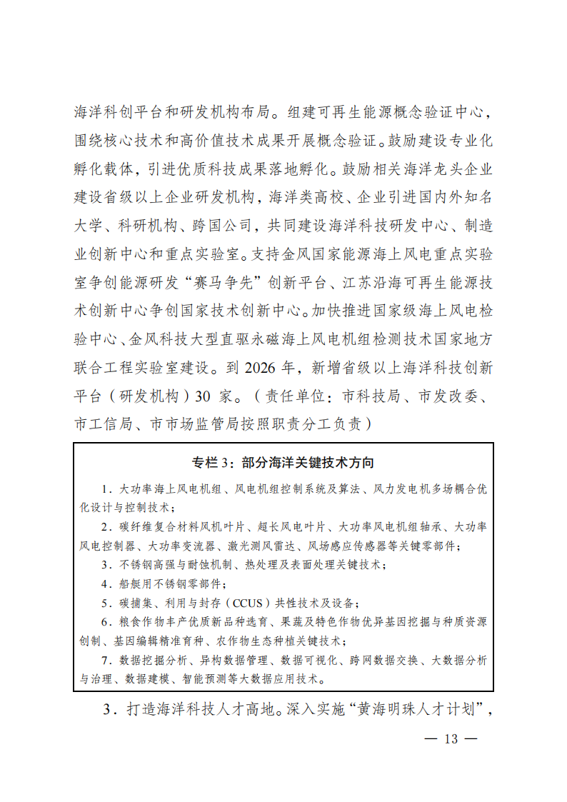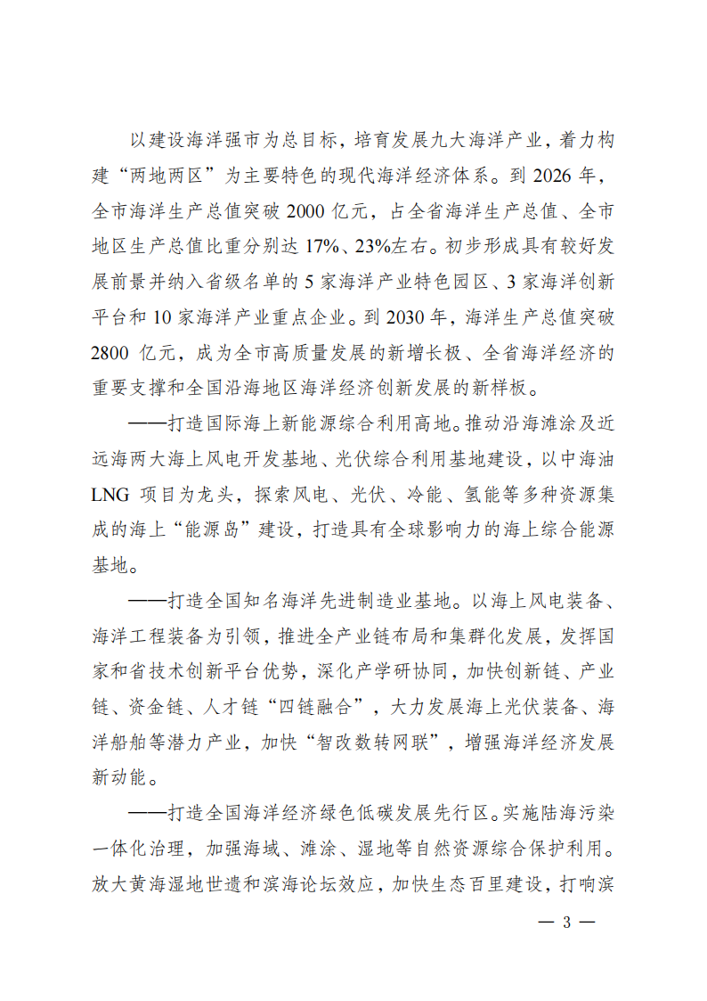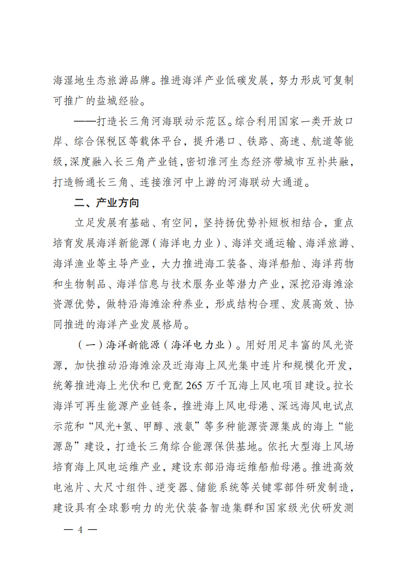 日前,江西盐城市公布《盐城市海洋经济高质量发展三年行动计划(2024-2026 年)》。文件指出,用好用足丰富的风光资源,加快推动沿海滩涂及近海海上风光集中连片和规模化开发,统筹推进海上光伏和已竞配265万千瓦海上风电项目建设。拉长海洋可再生能源产业链条,推进海上风电母港、深远海风电试点示范和“风光+氢、甲醇、液氨”等多种能源资源集成的海上“能源岛”建设,打造长三角综合能源保供基地。依托大型海上风场培育海上风电运维产业,建设东部沿海运维船舶母港。