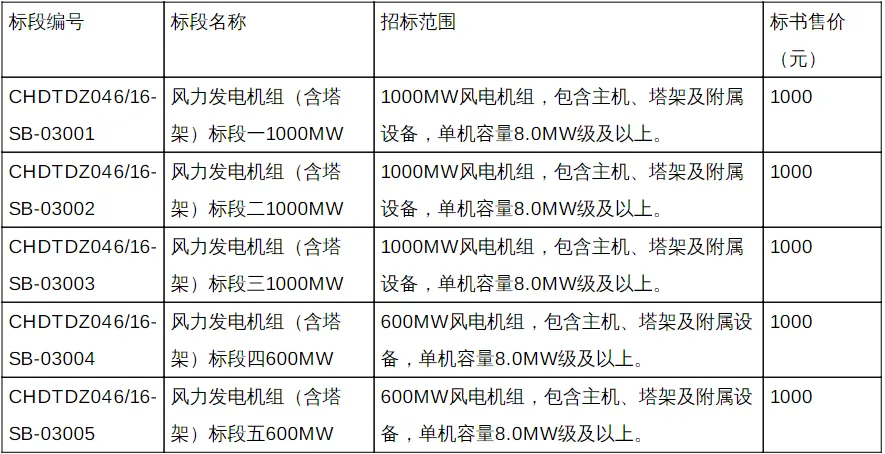 中广核招标规模为1350MW,华润招标规模为230MW,中国安能集团招标规模为150MW。